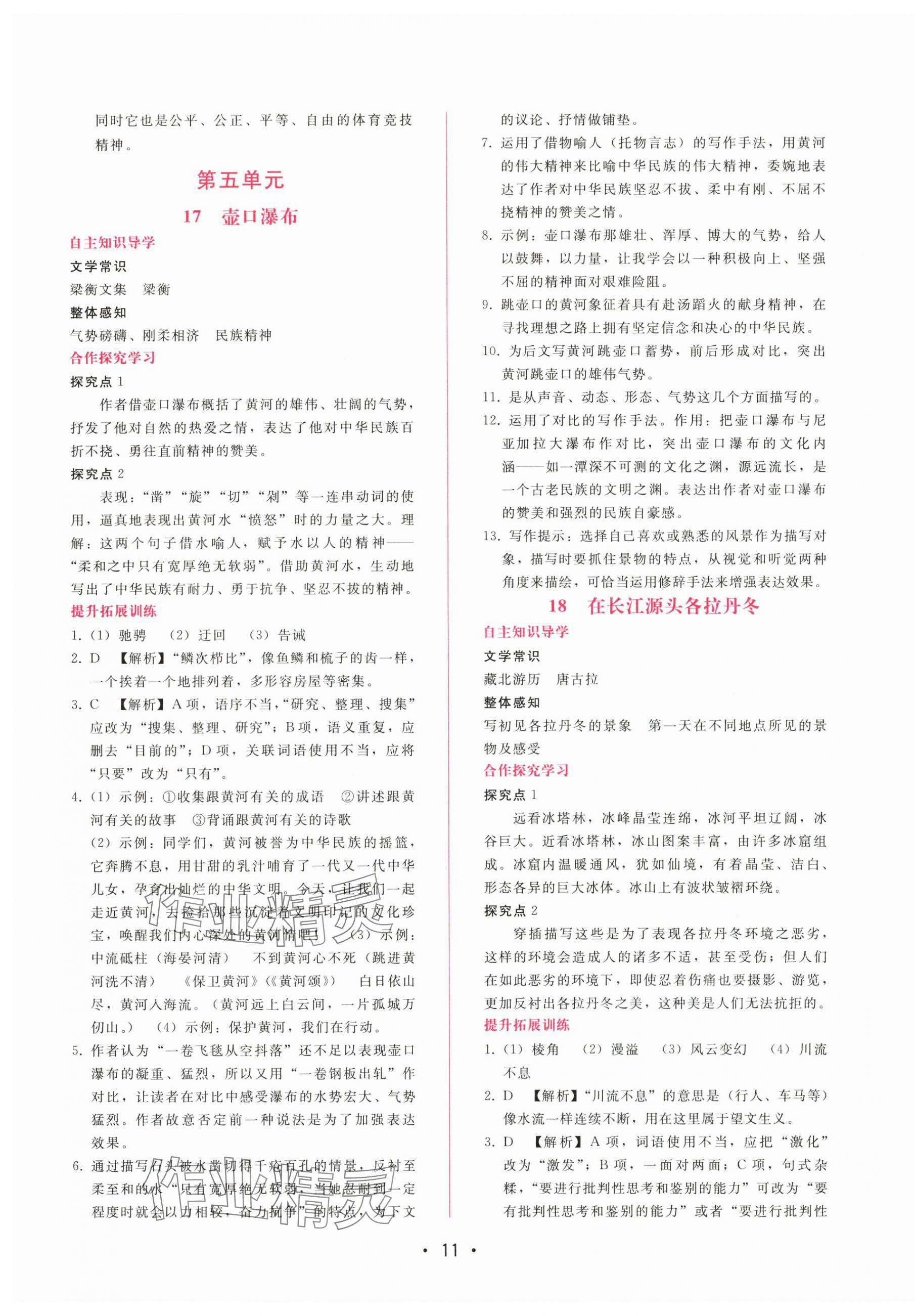 注:目前有些书本章节名称可能整理的还不是很完善,但都是按照顺序排列的,请同学们按照顺序仔细查找。练习册 2024年新课程学习辅导八年级语文下册人教版 答案主要是用来给同学们做完题方便对答案用的,请勿直接抄袭。