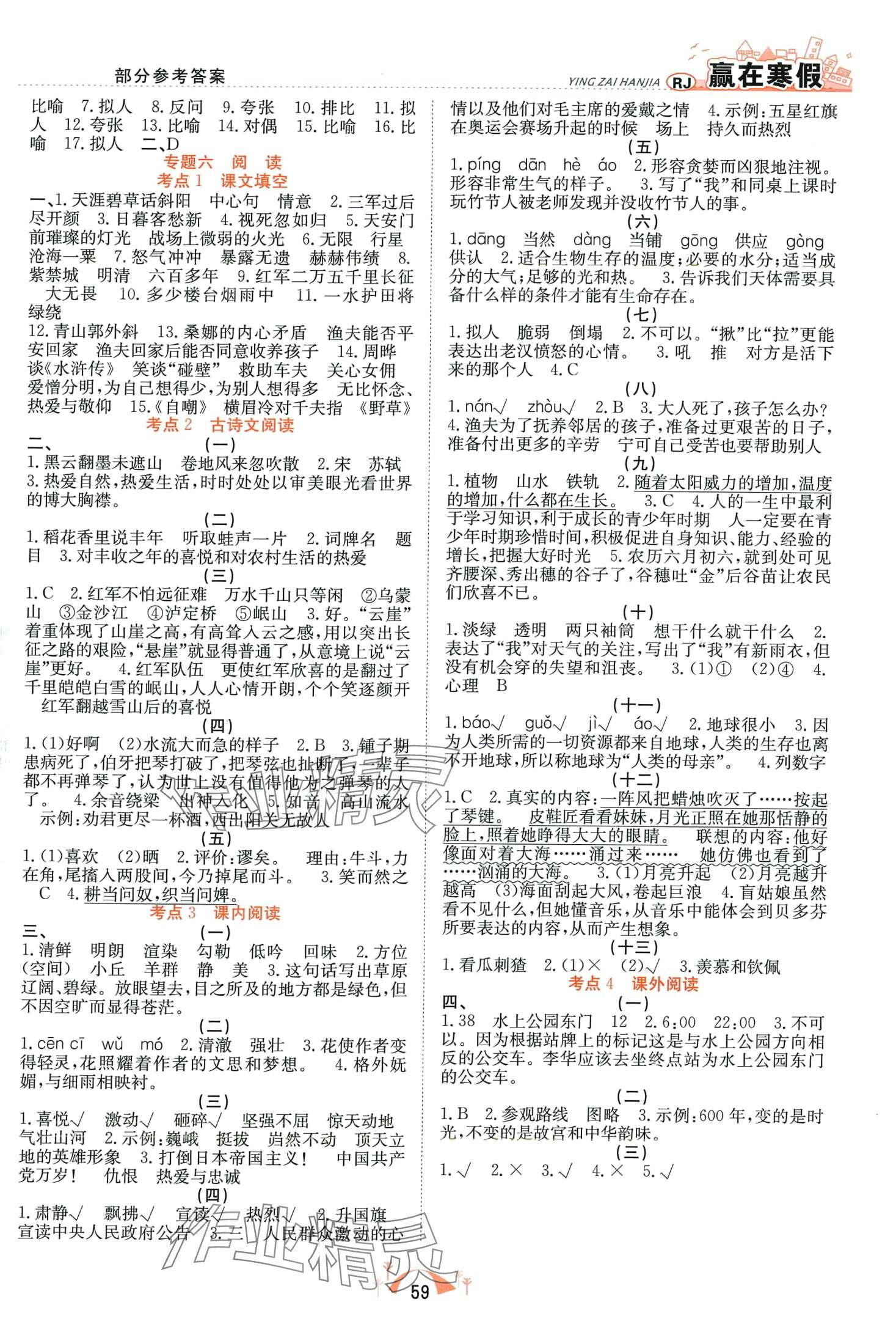 注:目前有些书本章节名称可能整理的还不是很完善,但都是按照顺序排列的,请同学们按照顺序仔细查找。练习册 2024年赢在寒假期末闯关合肥工业大学出版社六年级语文人教版 答案主要是用来给同学们做完题方便对答案用的,请勿直接抄袭。