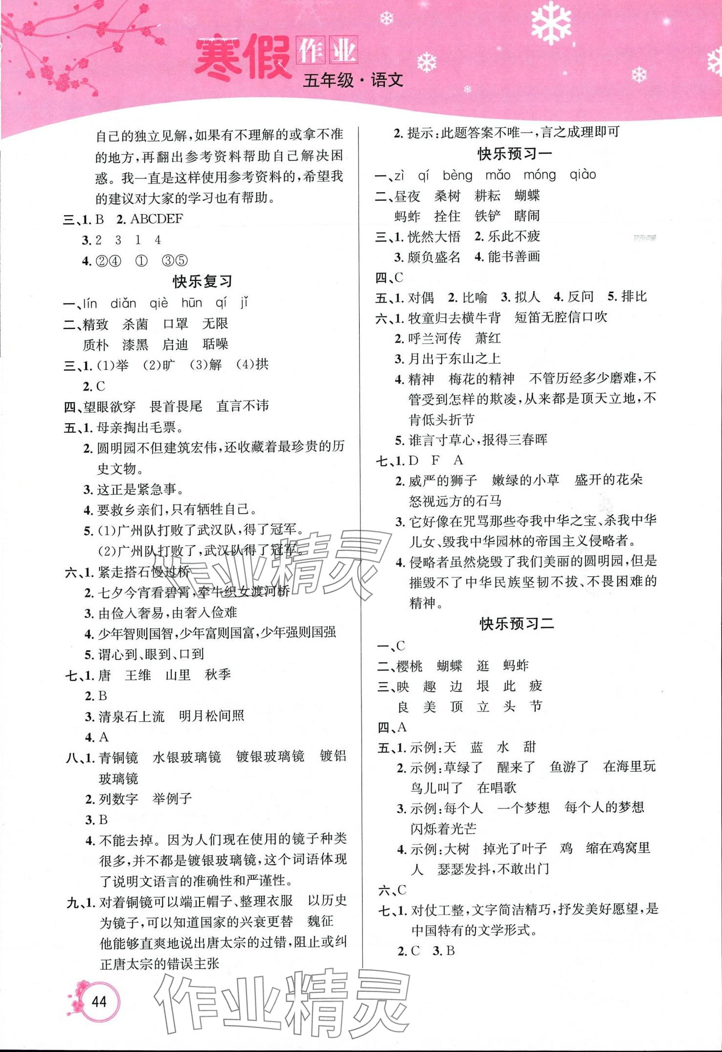 注:目前有些书本章节名称可能整理的还不是很完善,但都是按照顺序排列的,请同学们按照顺序仔细查找。练习册 2024年寒假作业延边教育出版社五年级语文人教版 答案主要是用来给同学们做完题方便对答案用的,请勿直接抄袭。