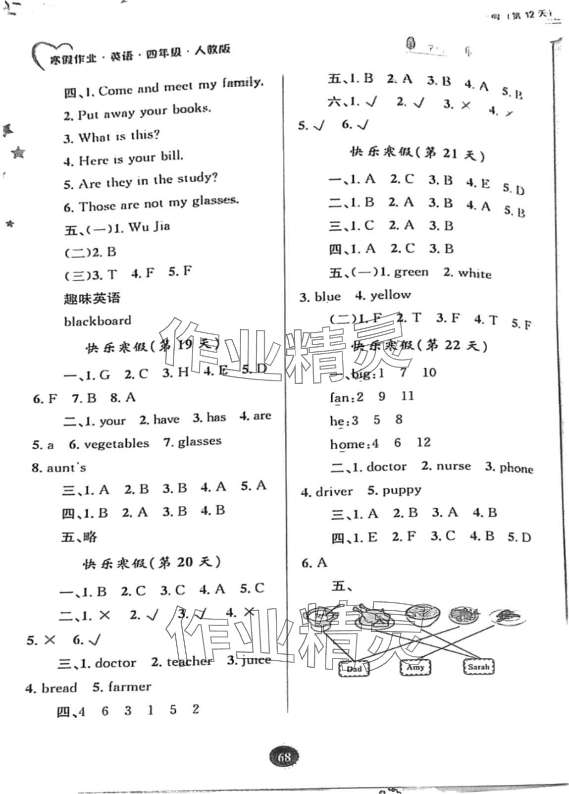 《2024年寒假作业贵州人民出版社四年级英语人教版》