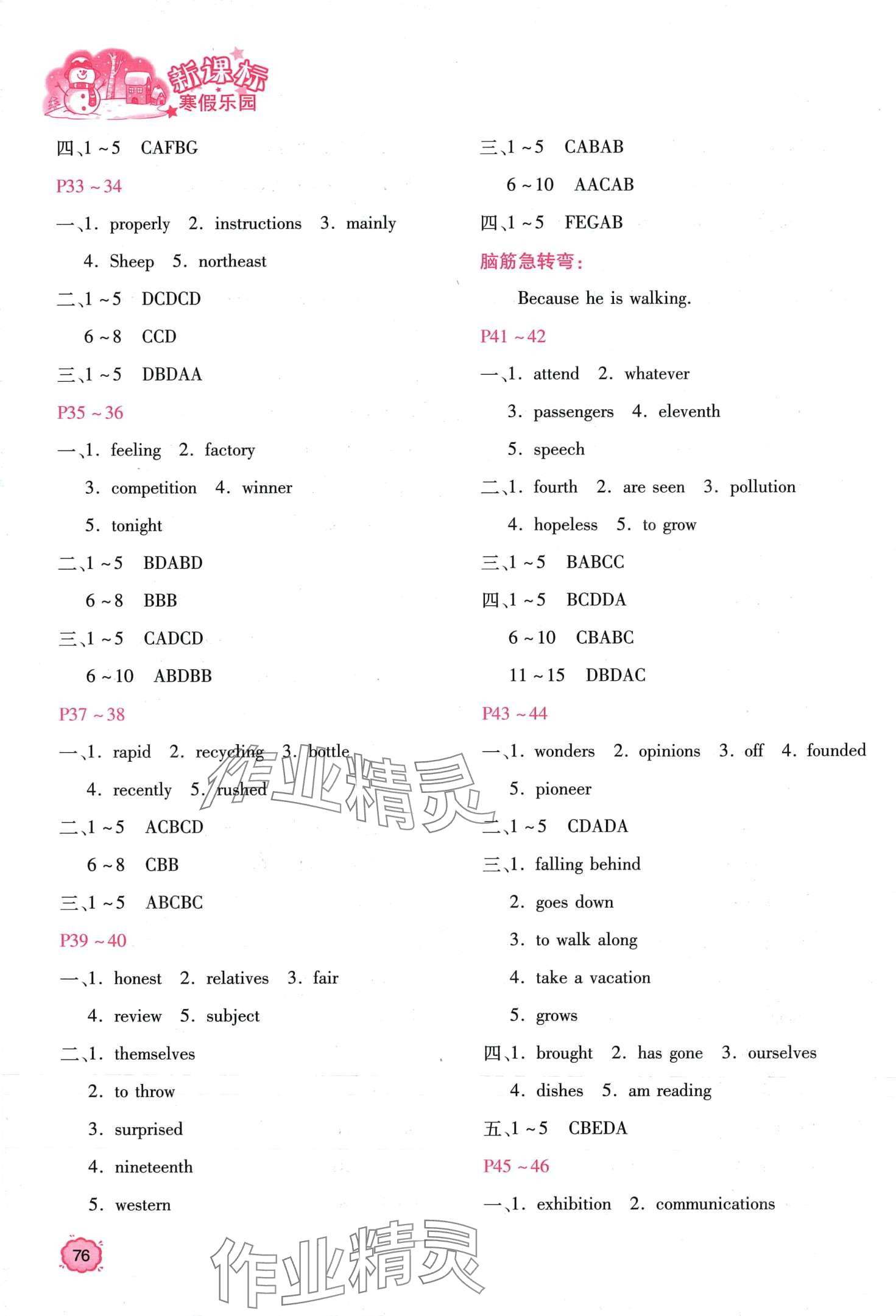 注:目前有些书本章节名称可能整理的还不是很完善,但都是按照顺序排列的,请同学们按照顺序仔细查找。练习册 2024年新课标寒假乐园九年级英语 答案主要是用来给同学们做完题方便对答案用的,请勿直接抄袭。