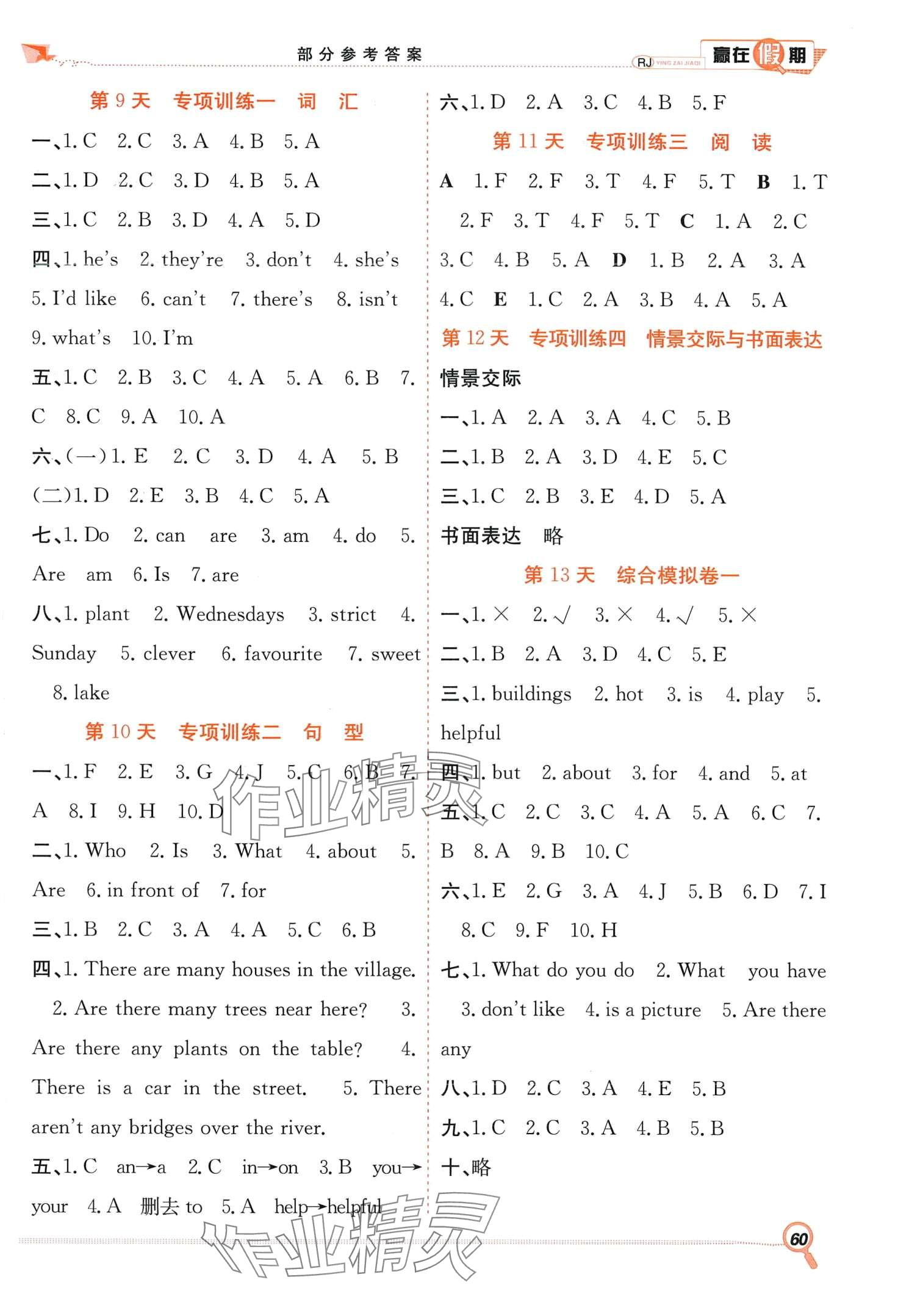 注:目前有些书本章节名称可能整理的还不是很完善,但都是按照顺序排列的,请同学们按照顺序仔细查找。练习册 2024年赢在假期期末加寒假合肥工业大学出版社五年级英语人教版 答案主要是用来给同学们做完题方便对答案用的,请勿直接抄袭。