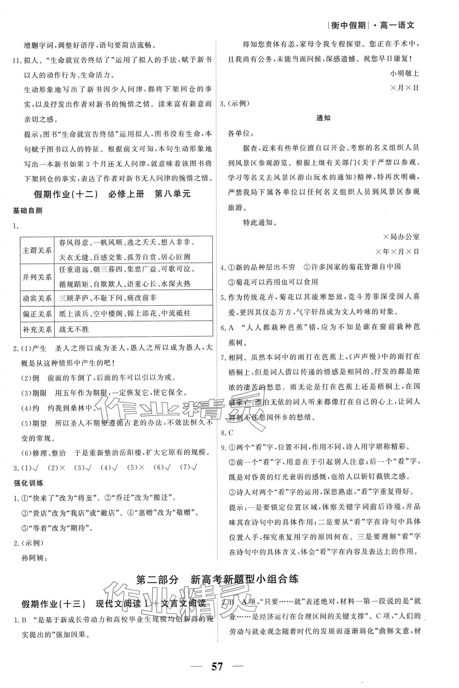 注:目前有些书本章节名称可能整理的还不是很完善,但都是按照顺序排列的,请同学们按照顺序仔细查找。练习册 2024年衡水金卷衡中假期高一语文 答案主要是用来给同学们做完题方便对答案用的,请勿直接抄袭。