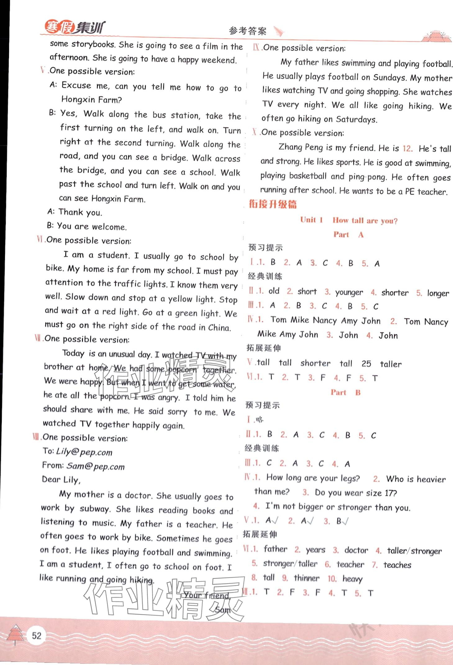 注:目前有些书本章节名称可能整理的还不是很完善,但都是按照顺序排列的,请同学们按照顺序仔细查找。练习册 2024年寒假集训合肥工业大学出版社六年级英语人教版 答案主要是用来给同学们做完题方便对答案用的,请勿直接抄袭。