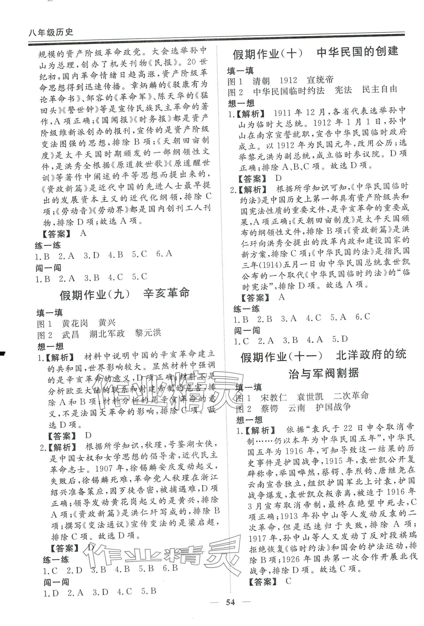 注:目前有些书本章节名称可能整理的还不是很完善,但都是按照顺序排列的,请同学们按照顺序仔细查找。练习册 2024年新思维假期作业给力必刷题八年级历史 答案主要是用来给同学们做完题方便对答案用的,请勿直接抄袭。