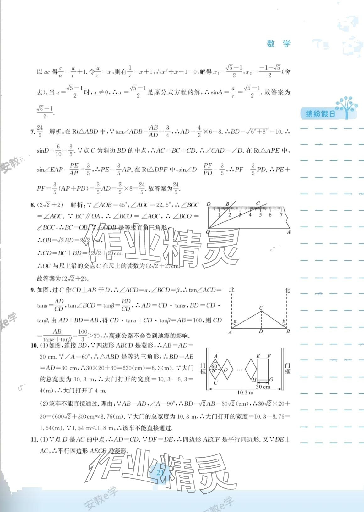 《2024年寒假生活安徽教育出版社九年级数学通用版S》
