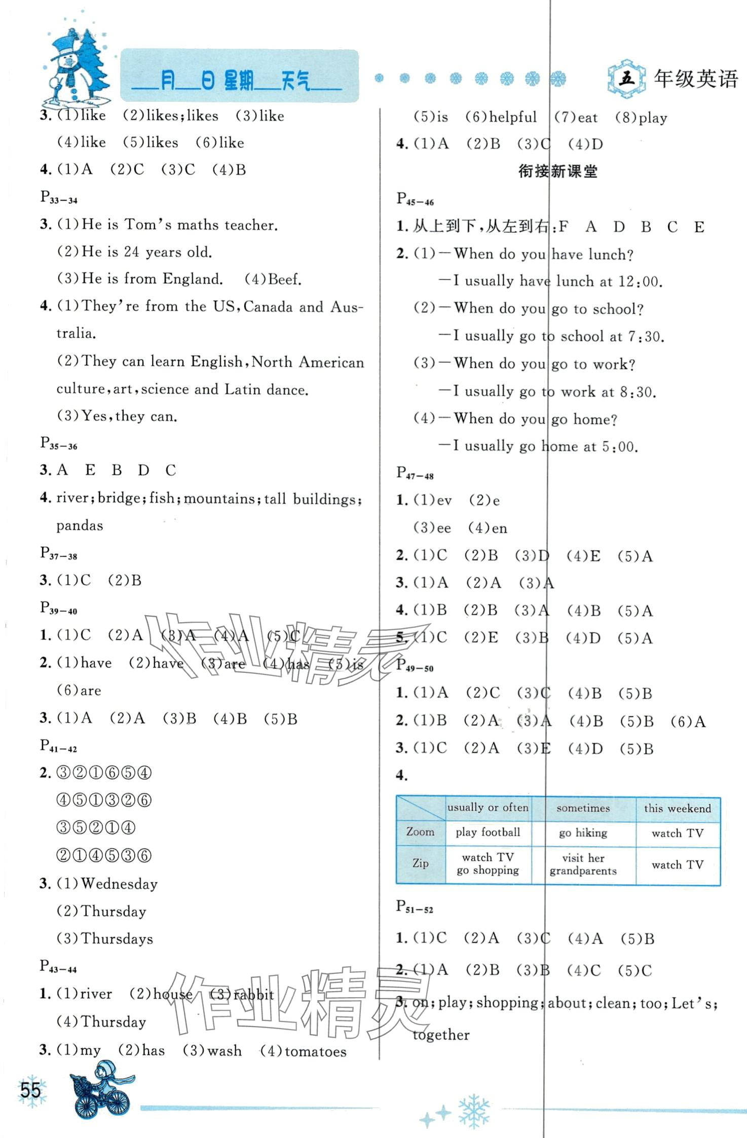 注:目前有些书本章节名称可能整理的还不是很完善,但都是按照顺序排列的,请同学们按照顺序仔细查找。练习册 2024年优秀生快乐假期每一天全新寒假作业本五年级英语人教版 答案主要是用来给同学们做完题方便对答案用的,请勿直接抄袭。