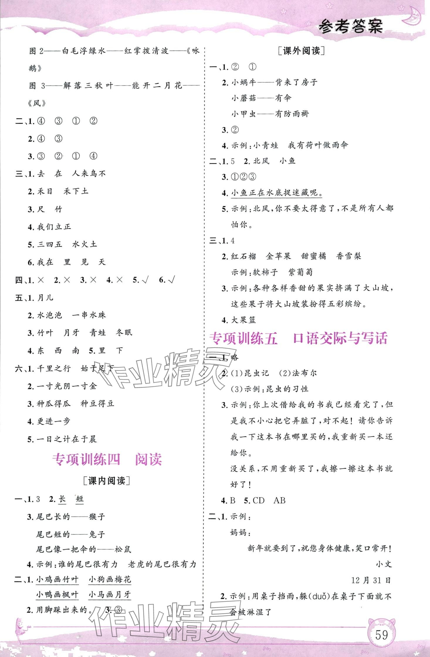 注:目前有些书本章节名称可能整理的还不是很完善,但都是按照顺序排列的,请同学们按照顺序仔细查找。练习册 2024年文轩图书假期生活指导寒一年级语文 答案主要是用来给同学们做完题方便对答案用的,请勿直接抄袭。