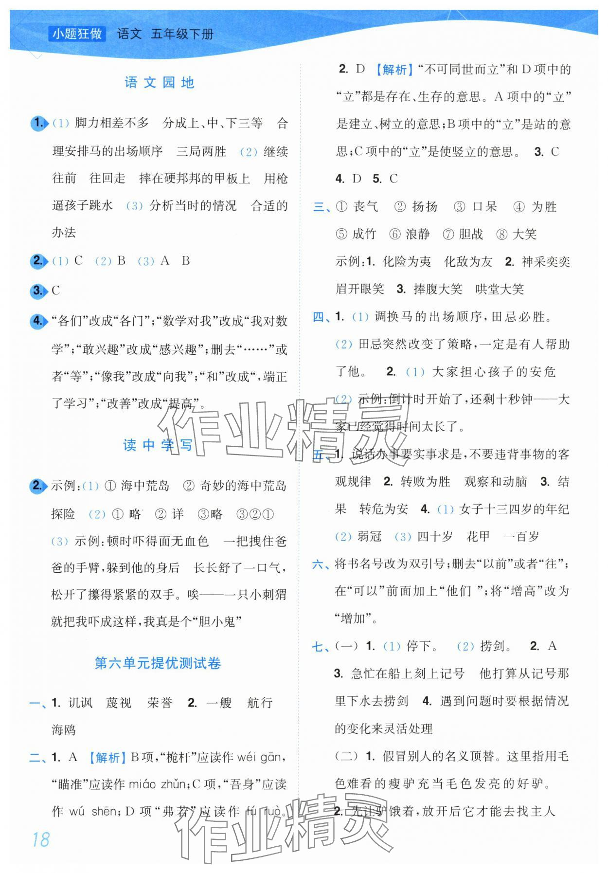 注:目前有些书本章节名称可能整理的还不是很完善,但都是按照顺序排列的,请同学们按照顺序仔细查找。练习册 2024年小题狂做培优作业本五年级语文下册人教版 答案主要是用来给同学们做完题方便对答案用的,请勿直接抄袭。