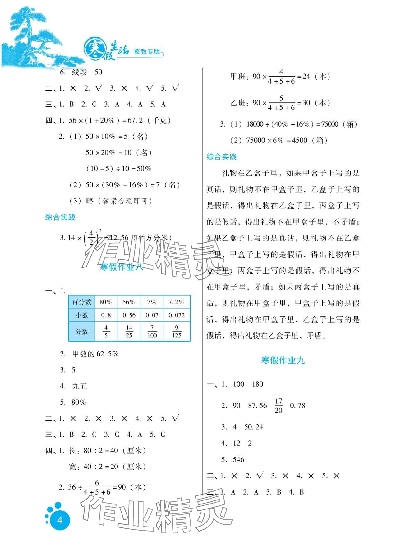 《2024年寒假生活河北人民出版社六年级数学冀教版》