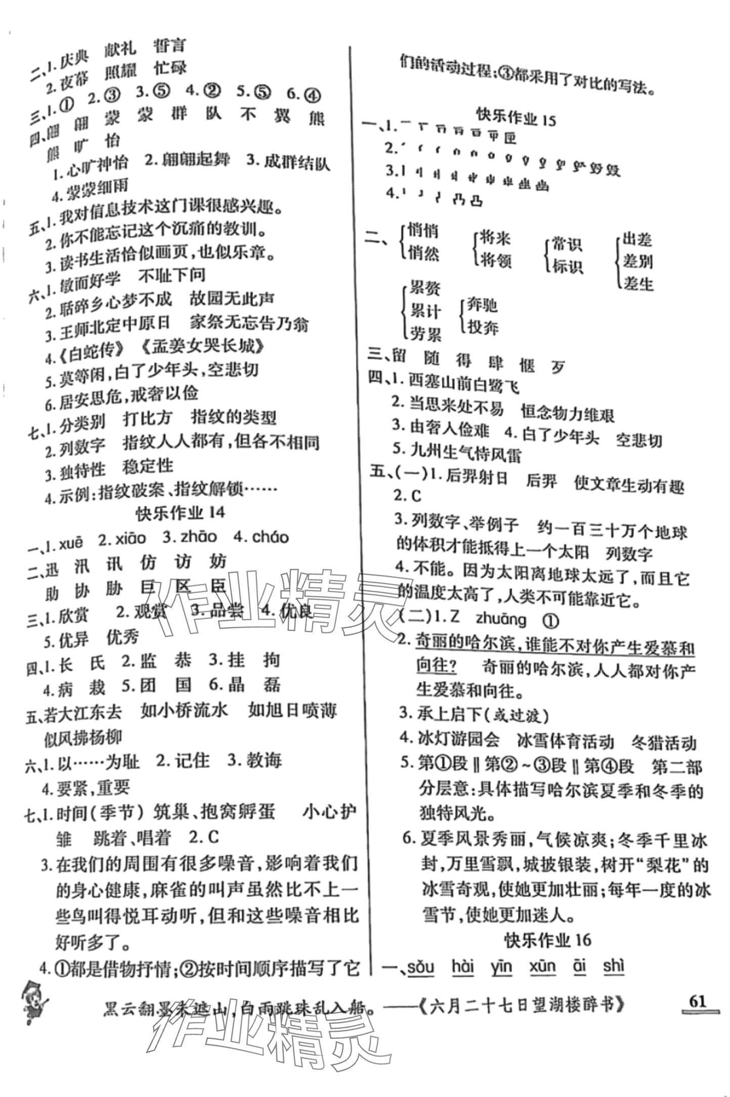 注:目前有些书本章节名称可能整理的还不是很完善,但都是按照顺序排列的,请同学们按照顺序仔细查找。练习册 2024年假期新作业暑假陕西师范大学出版总社五年级语文 答案主要是用来给同学们做完题方便对答案用的,请勿直接抄袭。