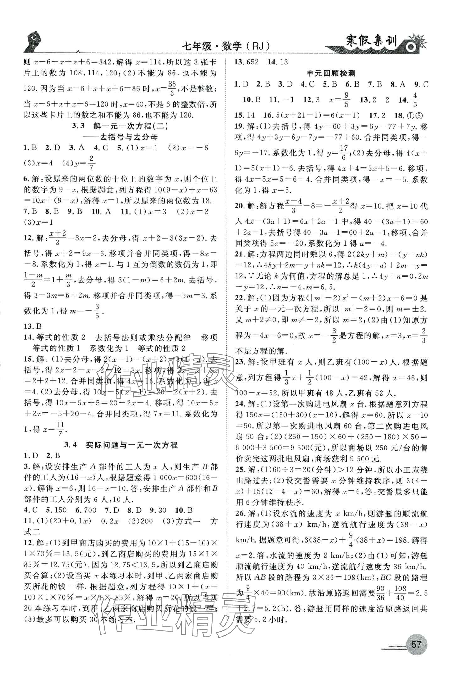 注:目前有些书本章节名称可能整理的还不是很完善,但都是按照顺序排列的,请同学们按照顺序仔细查找。练习册 2024年寒假集训合肥工业大学出版社七年级数学人教版 答案主要是用来给同学们做完题方便对答案用的,请勿直接抄袭。