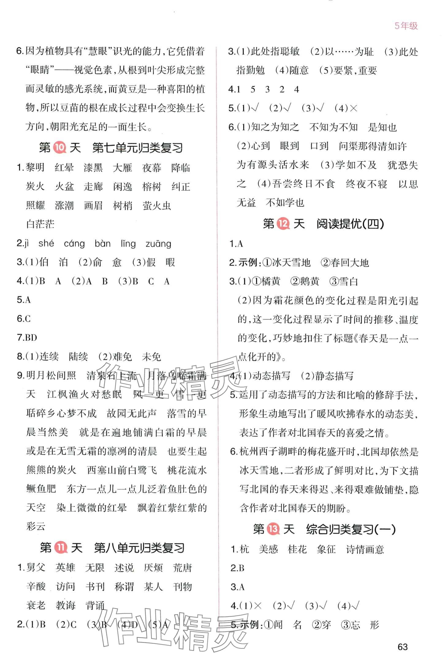 注:目前有些书本章节名称可能整理的还不是很完善,但都是按照顺序排列的,请同学们按照顺序仔细查找。练习册 2024年一本寒假五年级语文 答案主要是用来给同学们做完题方便对答案用的,请勿直接抄袭。