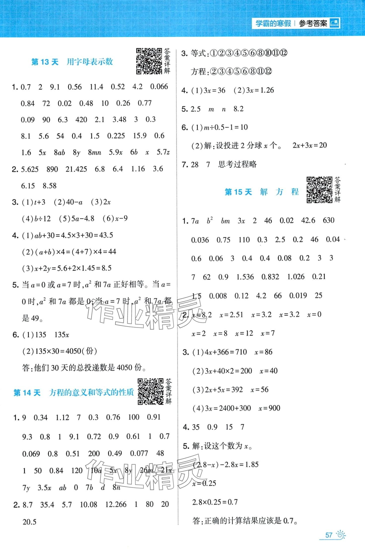 注:目前有些书本章节名称可能整理的还不是很完善,但都是按照顺序排列的,请同学们按照顺序仔细查找。练习册 2024年学霸的寒假五年级数学人教版 答案主要是用来给同学们做完题方便对答案用的,请勿直接抄袭。
