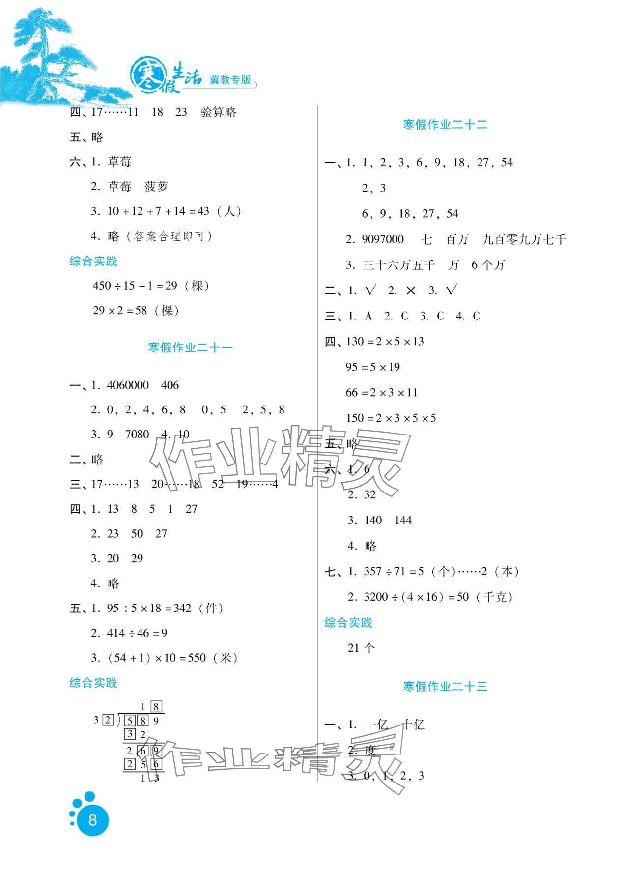 2024年寒假生活河北人民出版社四年级数学冀教版