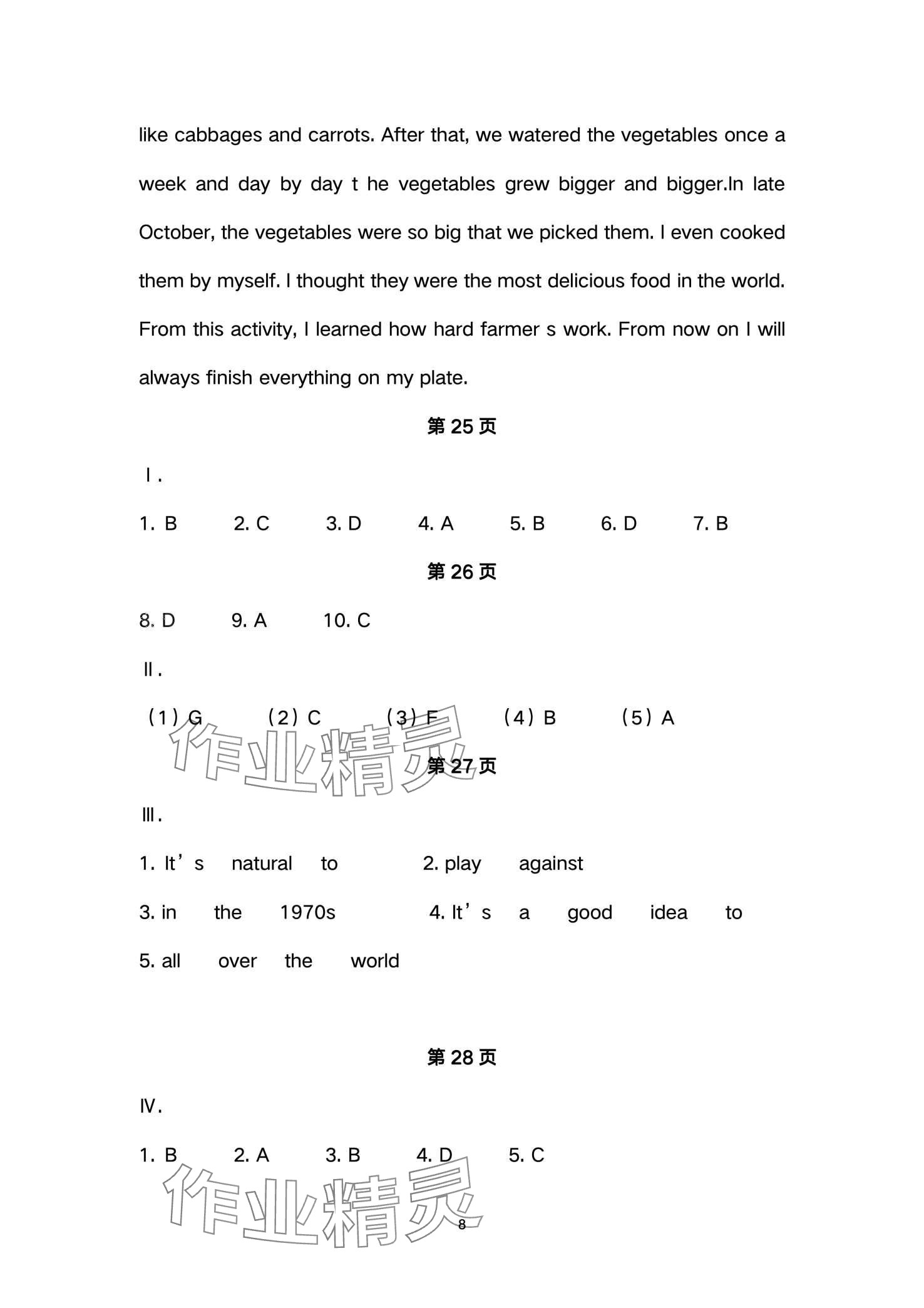 注:目前有些书本章节名称可能整理的还不是很完善,但都是按照顺序排列的,请同学们按照顺序仔细查找。练习册 2024年寒假生活安徽教育出版社八年级英语外研版 答案主要是用来给同学们做完题方便对答案用的,请勿直接抄袭。