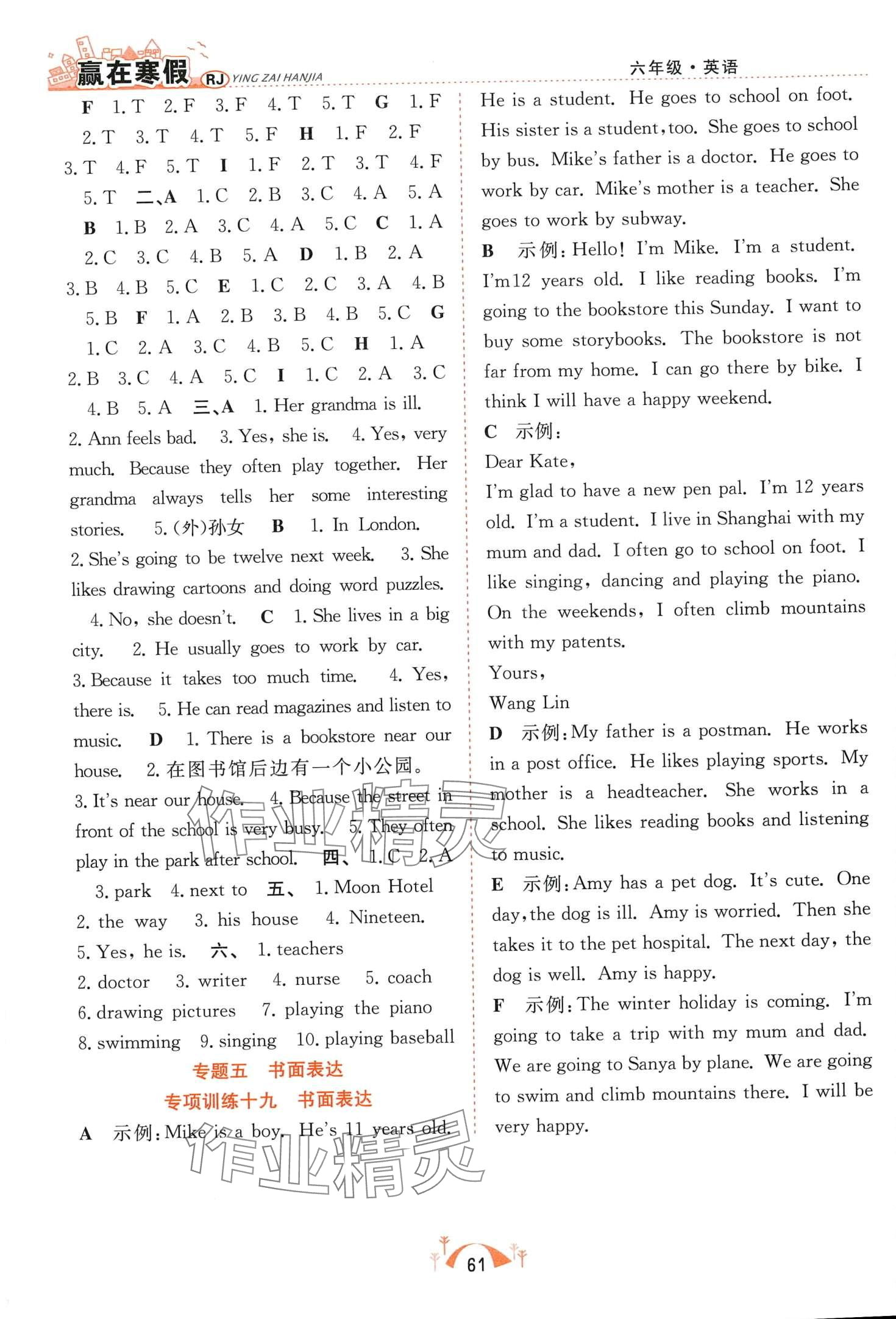 注:目前有些书本章节名称可能整理的还不是很完善,但都是按照顺序排列的,请同学们按照顺序仔细查找。练习册 2024年赢在寒假期末闯关合肥工业大学出版社六年级英语人教版 答案主要是用来给同学们做完题方便对答案用的,请勿直接抄袭。