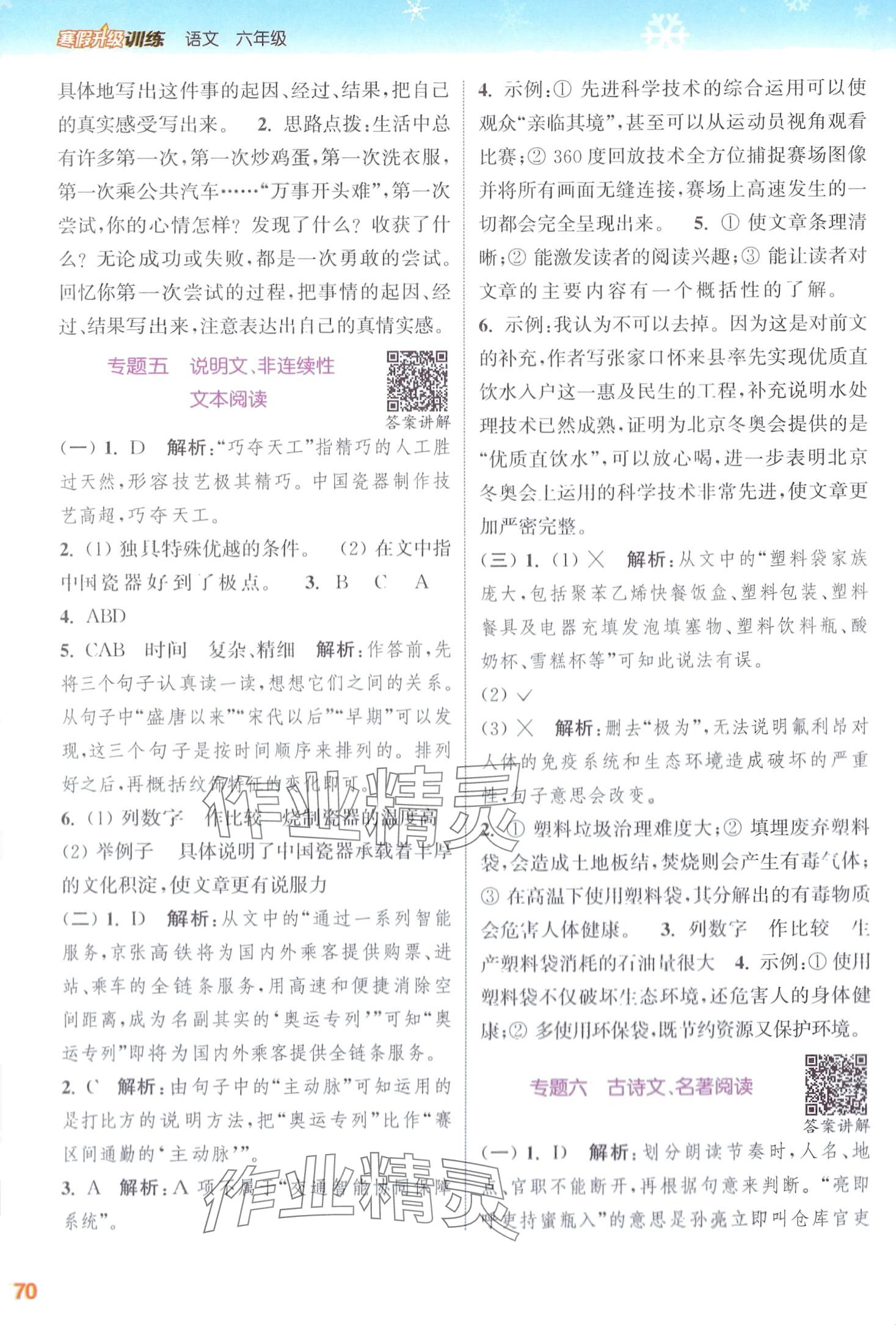 注:目前有些书本章节名称可能整理的还不是很完善,但都是按照顺序排列的,请同学们按照顺序仔细查找。练习册 2024年寒假升级训练浙江教育出版社六年级语文 答案主要是用来给同学们做完题方便对答案用的,请勿直接抄袭。
