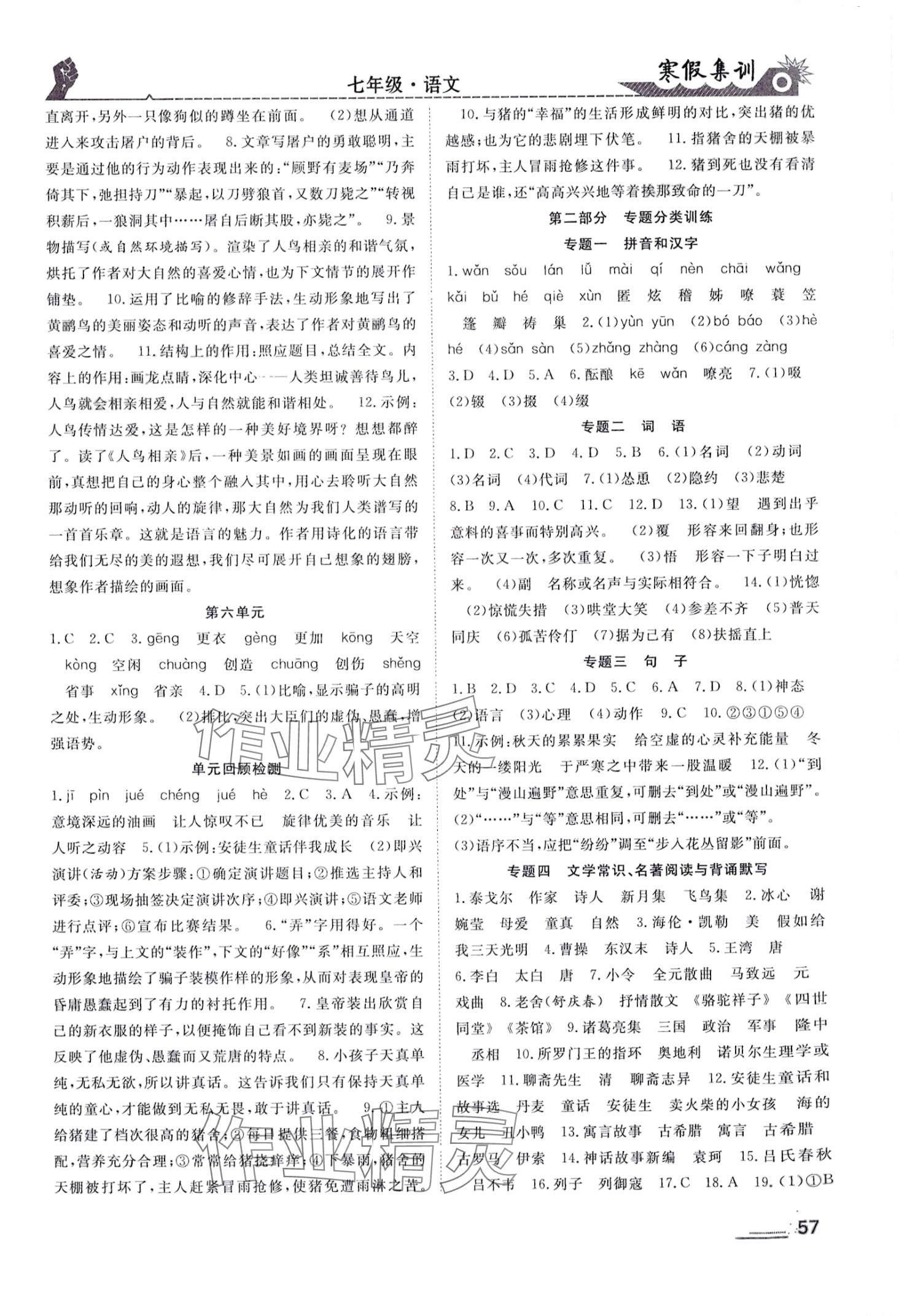 注:目前有些书本章节名称可能整理的还不是很完善,但都是按照顺序排列的,请同学们按照顺序仔细查找。练习册 2024年寒假集训合肥工业大学出版社七年级语文 答案主要是用来给同学们做完题方便对答案用的,请勿直接抄袭。