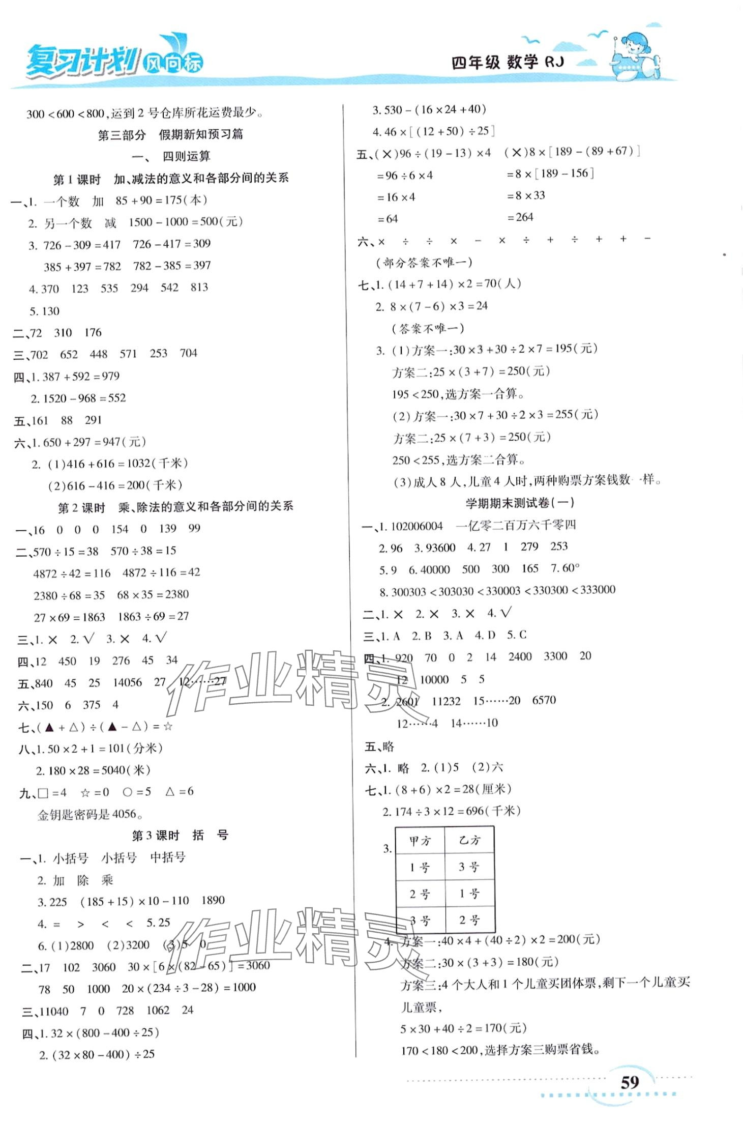 注:目前有些书本章节名称可能整理的还不是很完善,但都是按照顺序排列的,请同学们按照顺序仔细查找。练习册 2024年复习计划风向标寒四年级数学人教版 答案主要是用来给同学们做完题方便对答案用的,请勿直接抄袭。