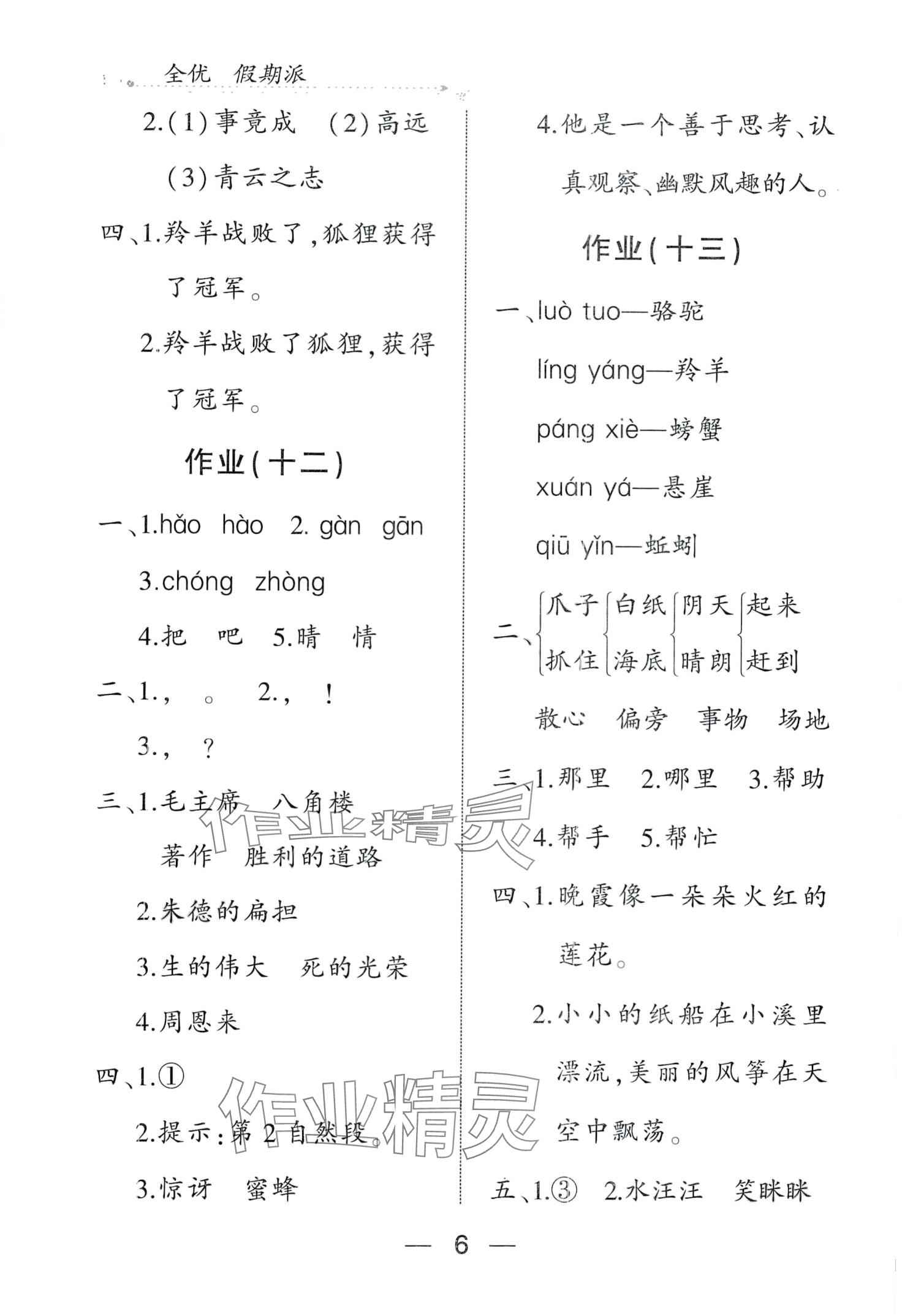 注:目前有些书本章节名称可能整理的还不是很完善,但都是按照顺序排列的,请同学们按照顺序仔细查找。练习册 2024年全优假期派二年级语文人教版 答案主要是用来给同学们做完题方便对答案用的,请勿直接抄袭。