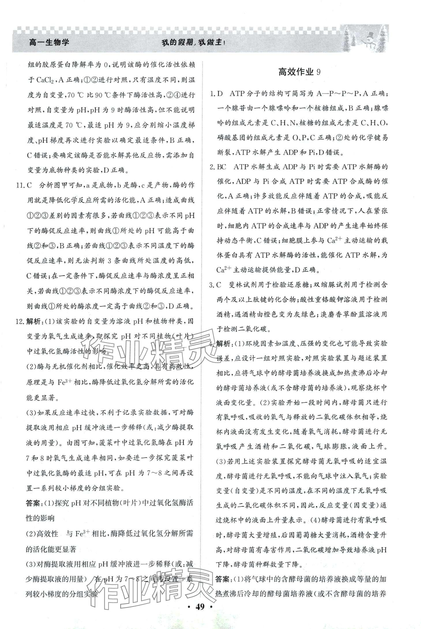 注:目前有些书本章节名称可能整理的还不是很完善,但都是按照顺序排列的,请同学们按照顺序仔细查找。练习册 2024年优化探究高效作业高一生物 答案主要是用来给同学们做完题方便对答案用的,请勿直接抄袭。