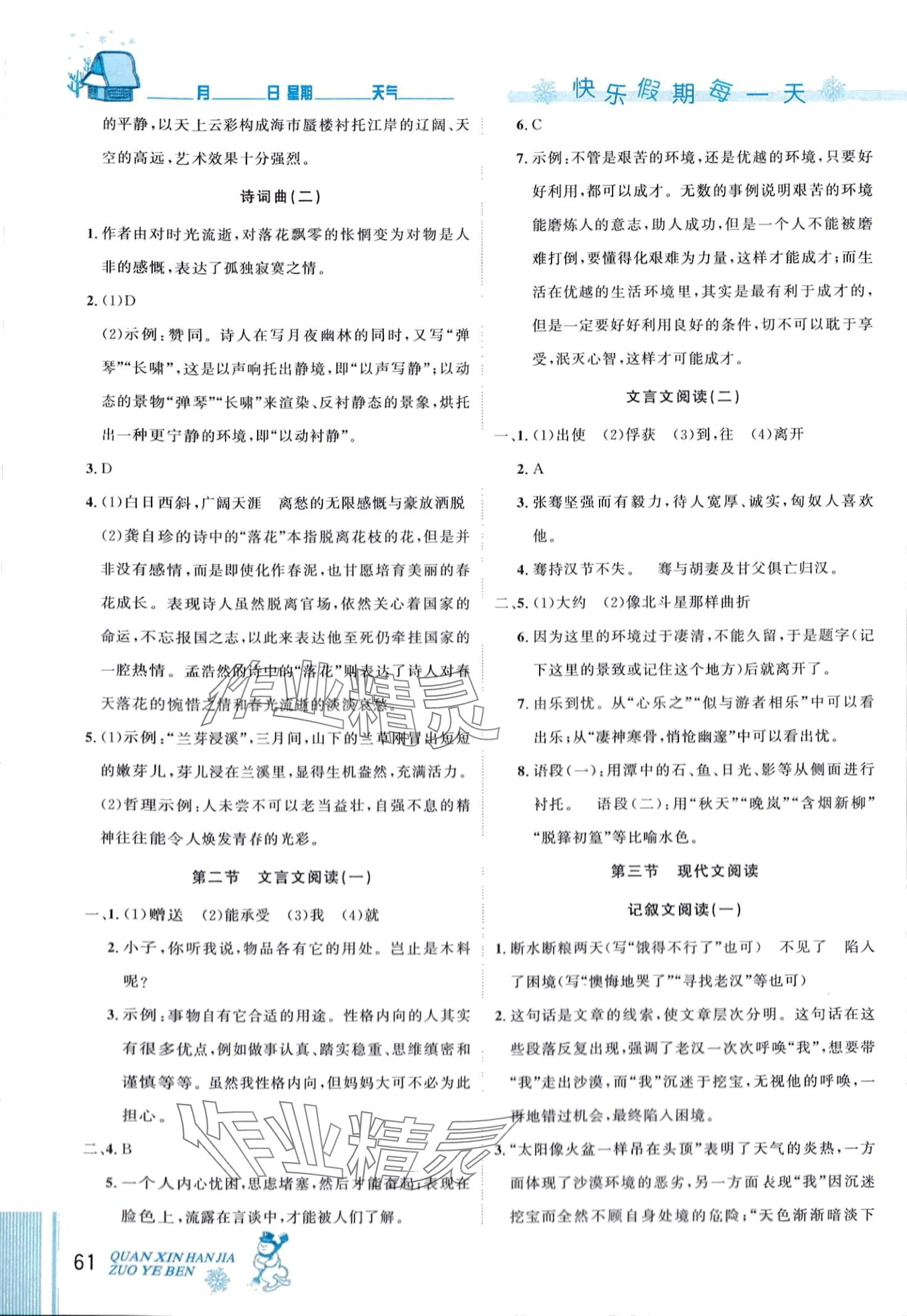 注:目前有些书本章节名称可能整理的还不是很完善,但都是按照顺序排列的,请同学们按照顺序仔细查找。练习册 2024年优秀生快乐假期每一天全新寒假作业本九年级语文人教版中考复习版 答案主要是用来给同学们做完题方便对答案用的,请勿直接抄袭。