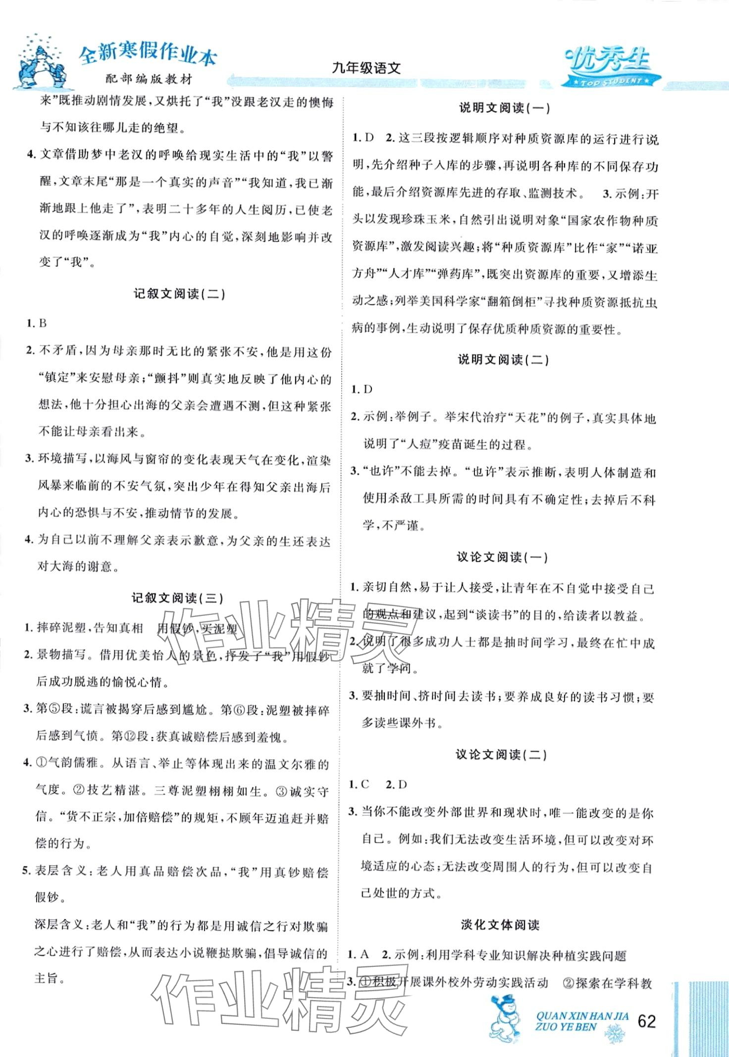 注:目前有些书本章节名称可能整理的还不是很完善,但都是按照顺序排列的,请同学们按照顺序仔细查找。练习册 2024年优秀生快乐假期每一天全新寒假作业本九年级语文人教版中考复习版 答案主要是用来给同学们做完题方便对答案用的,请勿直接抄袭。