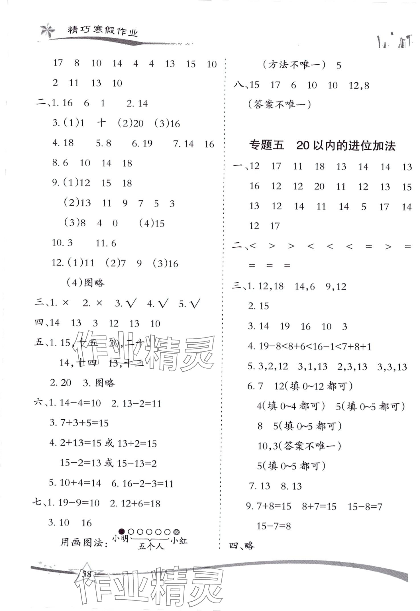 注:目前有些书本章节名称可能整理的还不是很完善,但都是按照顺序排列的,请同学们按照顺序仔细查找。练习册 2024年精巧寒假作业云南美术出版社一年级数学人教版 答案主要是用来给同学们做完题方便对答案用的,请勿直接抄袭。