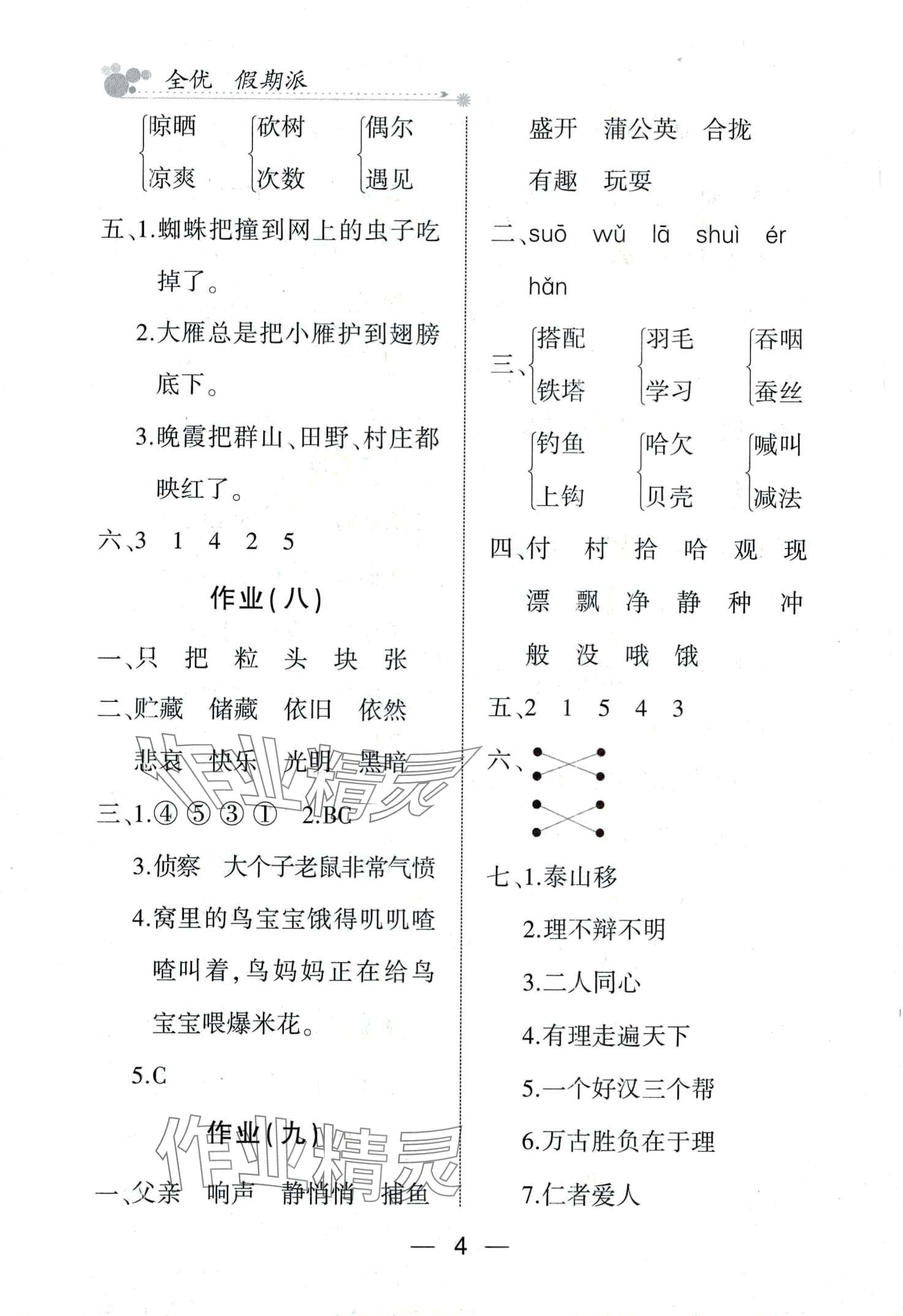 注:目前有些书本章节名称可能整理的还不是很完善,但都是按照顺序排列的,请同学们按照顺序仔细查找。练习册 2024年全优假期派三年级语文人教版 答案主要是用来给同学们做完题方便对答案用的,请勿直接抄袭。