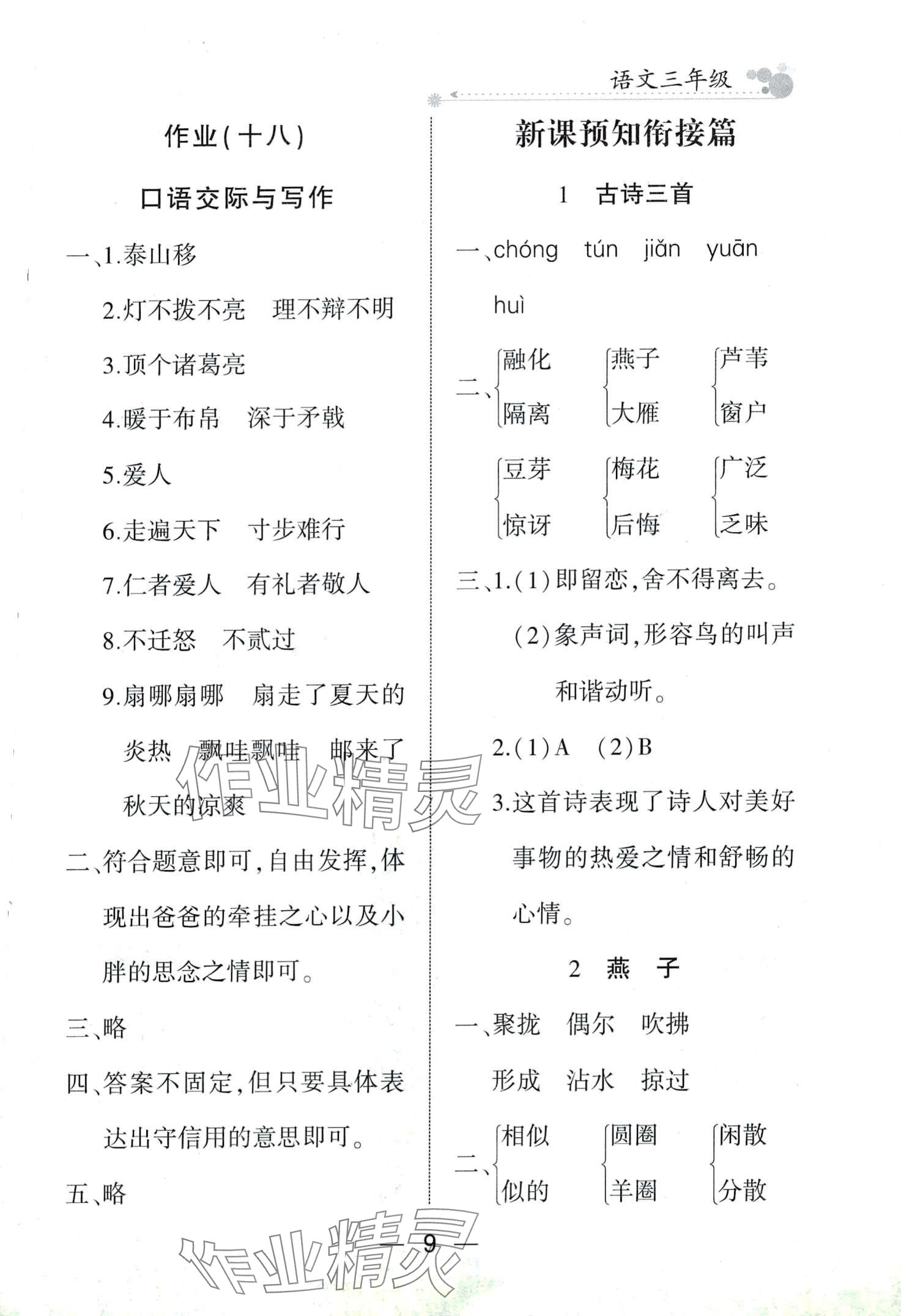注:目前有些书本章节名称可能整理的还不是很完善,但都是按照顺序排列的,请同学们按照顺序仔细查找。练习册 2024年全优假期派三年级语文人教版 答案主要是用来给同学们做完题方便对答案用的,请勿直接抄袭。