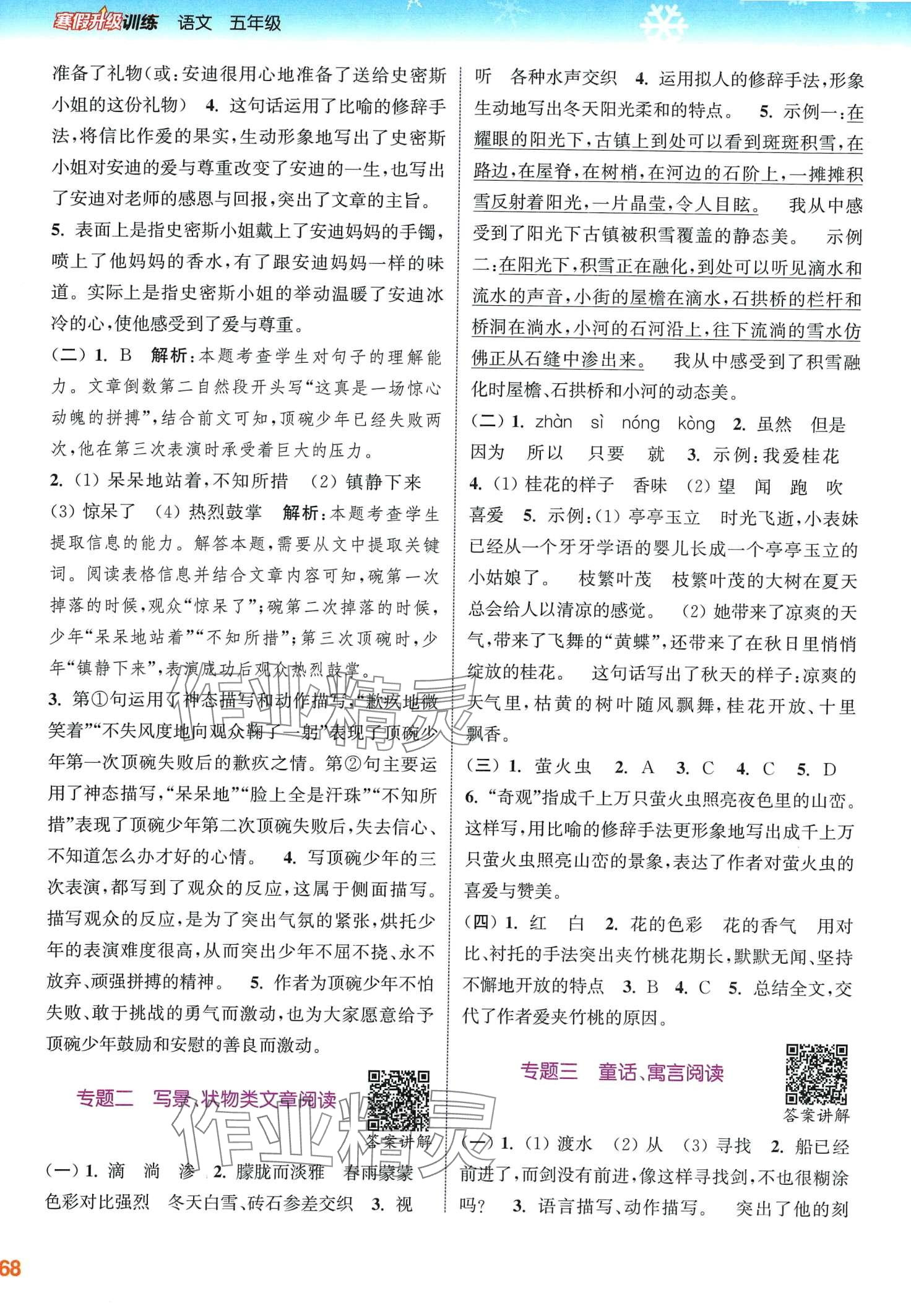 注:目前有些书本章节名称可能整理的还不是很完善,但都是按照顺序排列的,请同学们按照顺序仔细查找。练习册 2024年寒假升级训练浙江教育出版社五年级语文人教版 答案主要是用来给同学们做完题方便对答案用的,请勿直接抄袭。