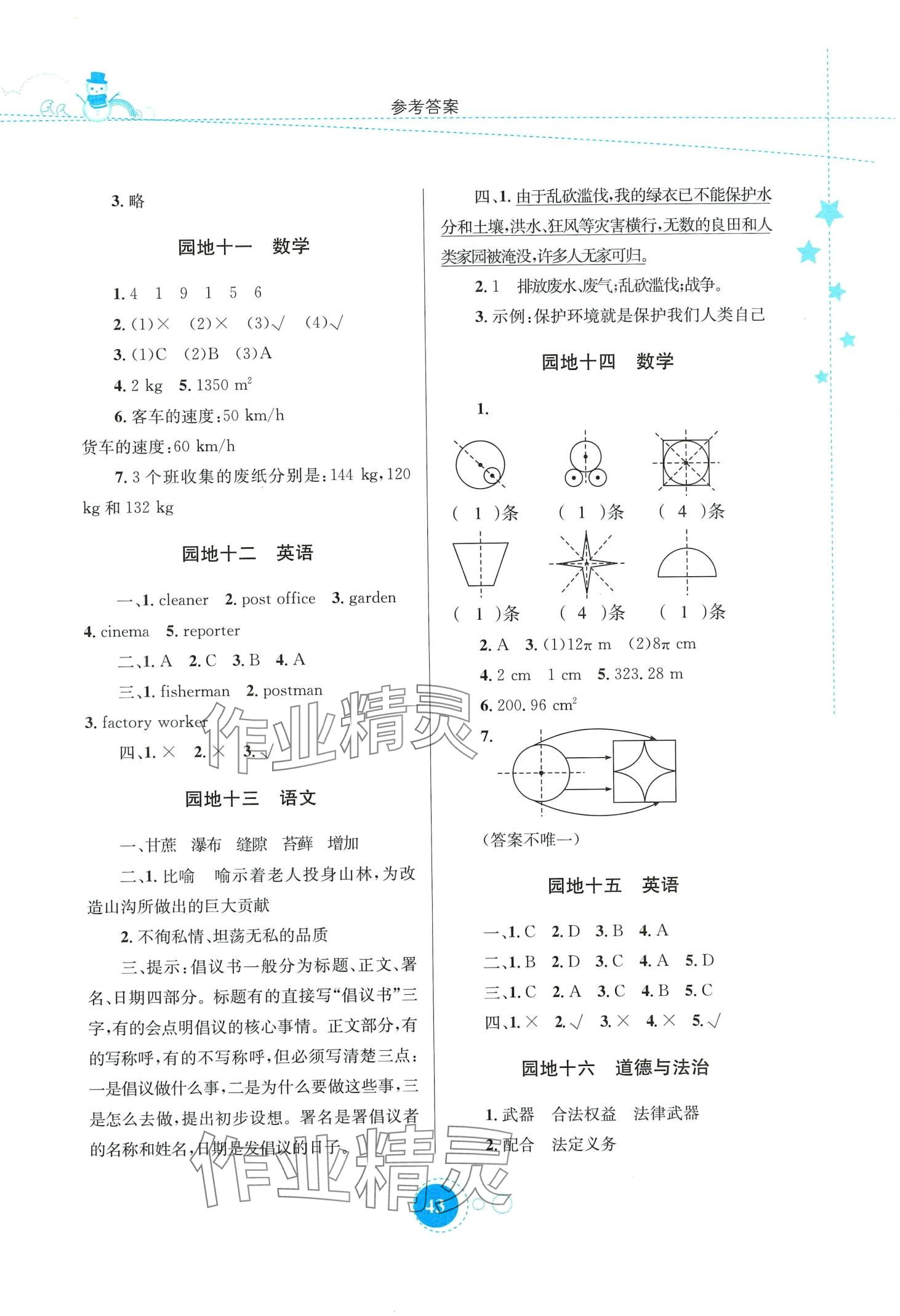 注:目前有些书本章节名称可能整理的还不是很完善,但都是按照顺序排列的,请同学们按照顺序仔细查找。练习册 2024年寒假园地知识出版社六年级合订本 答案主要是用来给同学们做完题方便对答案用的,请勿直接抄袭。