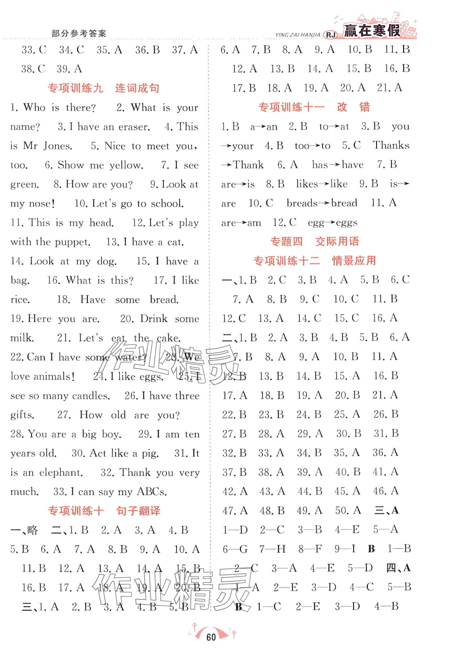 注:目前有些书本章节名称可能整理的还不是很完善,但都是按照顺序排列的,请同学们按照顺序仔细查找。练习册 2024年赢在寒假期末闯关合肥工业大学出版社三年级英语人教版 答案主要是用来给同学们做完题方便对答案用的,请勿直接抄袭。