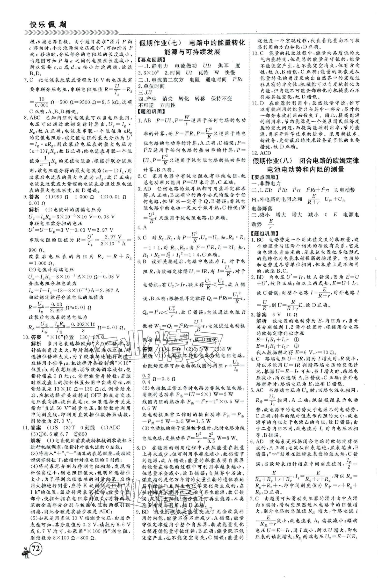 《2024年快乐假期黑龙江教育出版社高二物理》