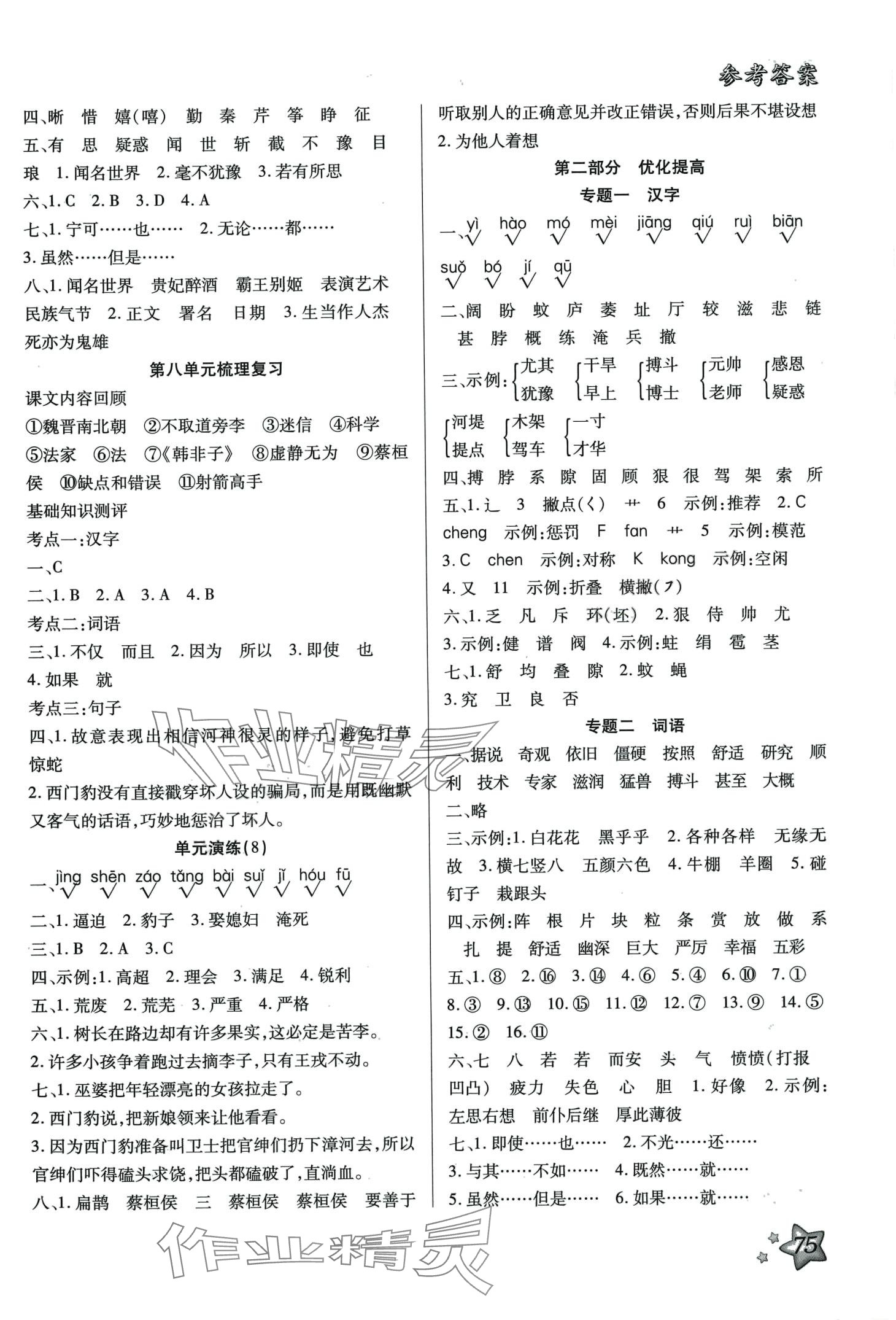 注:目前有些书本章节名称可能整理的还不是很完善,但都是按照顺序排列的,请同学们按照顺序仔细查找。练习册 2024年好学生梳理复习与衔接四年级语文 答案主要是用来给同学们做完题方便对答案用的,请勿直接抄袭。