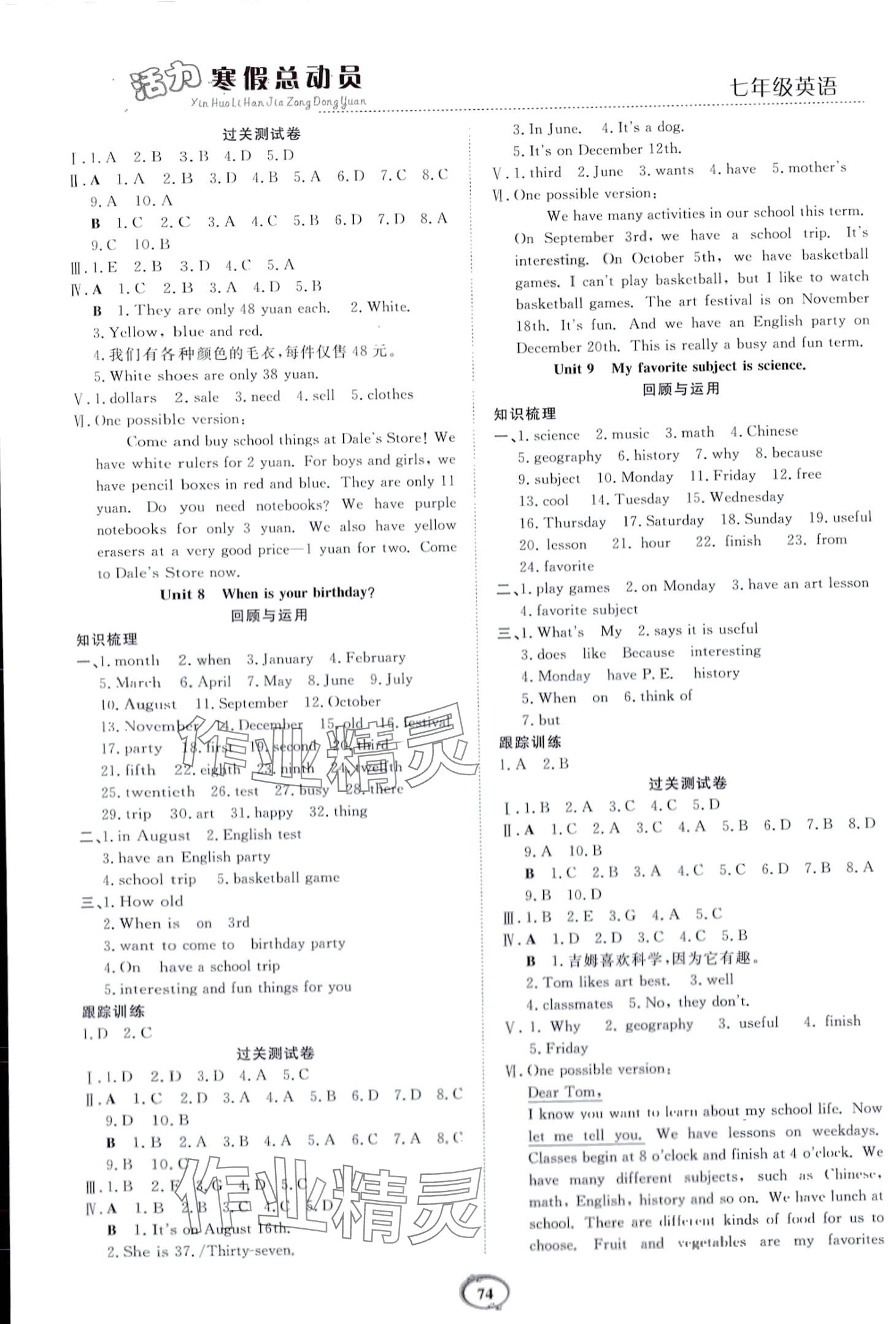 注:目前有些书本章节名称可能整理的还不是很完善,但都是按照顺序排列的,请同学们按照顺序仔细查找。练习册 2024年新活力总动员寒假七年级英语 答案主要是用来给同学们做完题方便对答案用的,请勿直接抄袭。