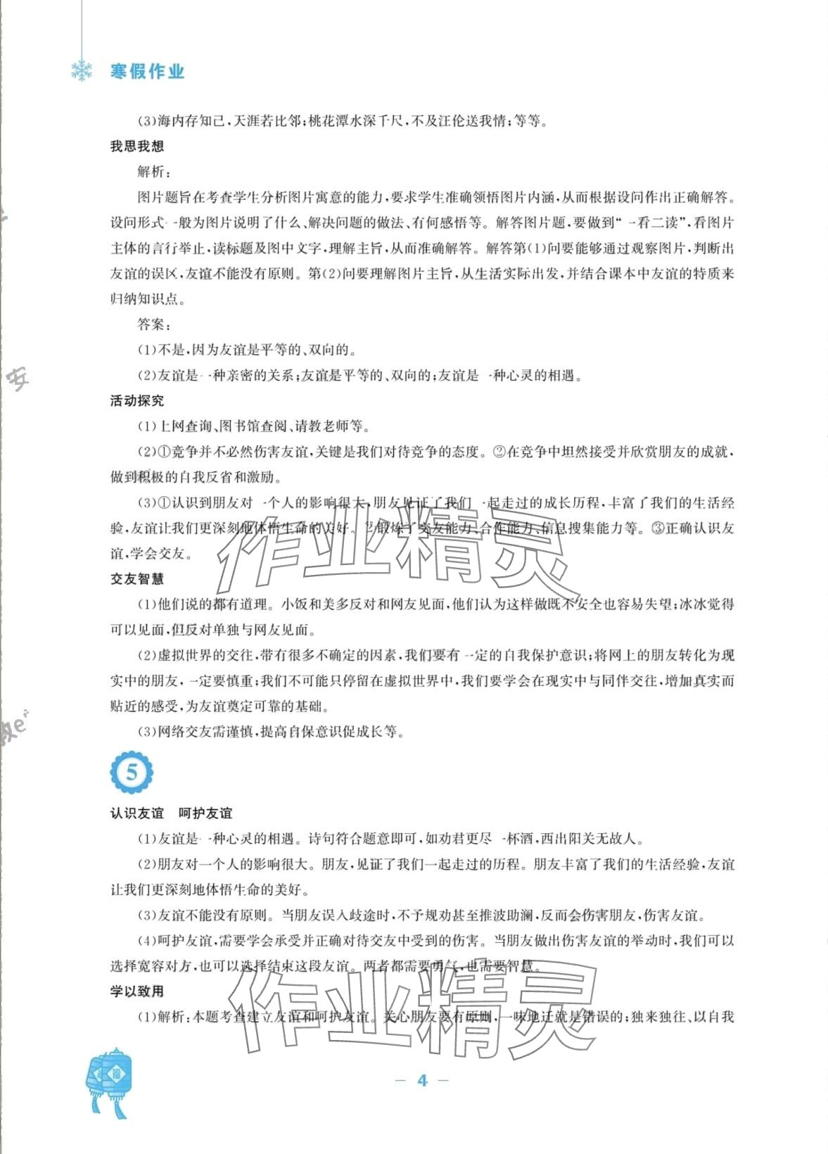 2024年寒假作业安徽教育出版社七年级道德与法治人教版