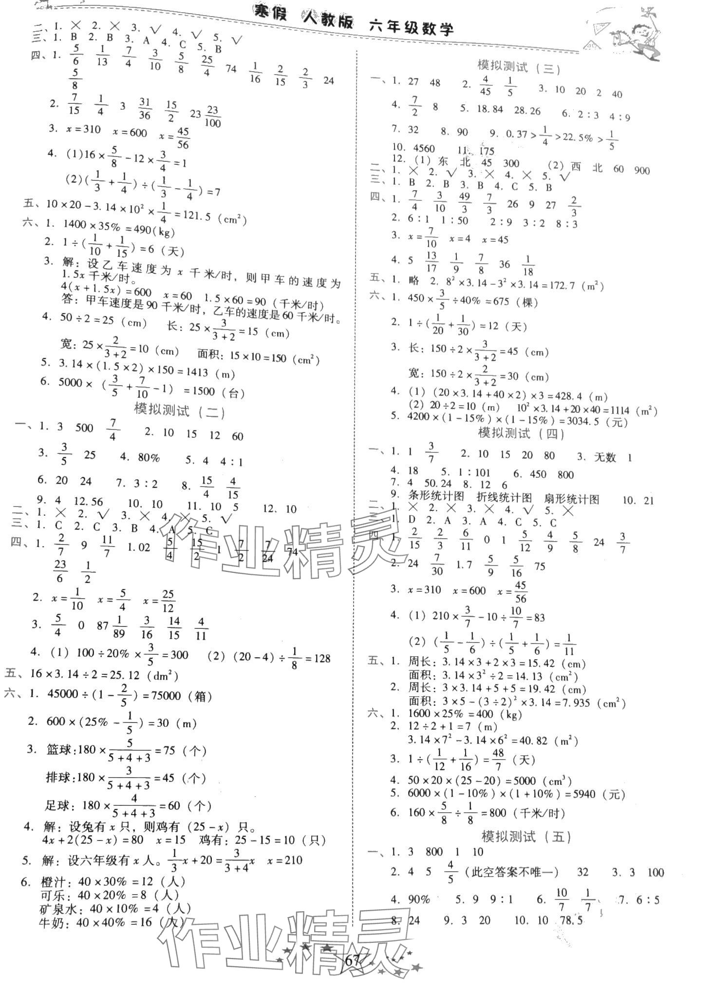 2024年快乐寒假中原农民出版社六年级数学人教版