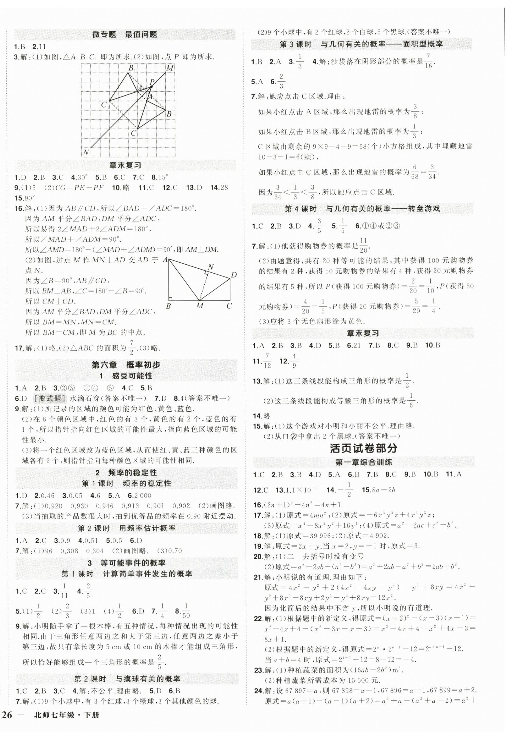 注:目前有些书本章节名称可能整理的还不是很完善,但都是按照顺序排列的,请同学们按照顺序仔细查找。练习册 2024年状元成才路创优作业七年级数学下册北师大版贵州专版 答案主要是用来给同学们做完题方便对答案用的,请勿直接抄袭。
