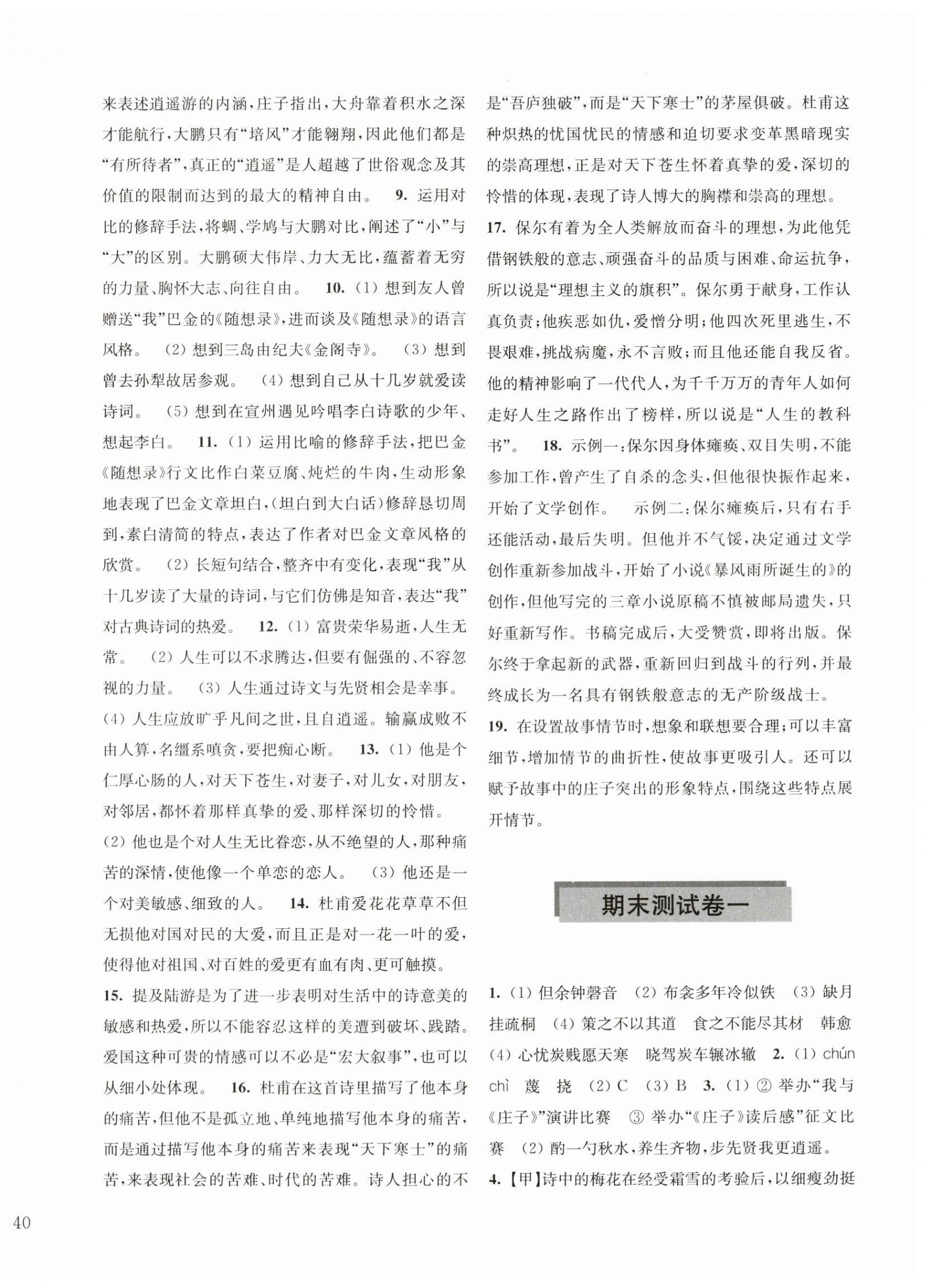注:目前有些书本章节名称可能整理的还不是很完善,但都是按照顺序排列的,请同学们按照顺序仔细查找。练习册 2024年学习与评价活页卷八年级语文下册人教版 答案主要是用来给同学们做完题方便对答案用的,请勿直接抄袭。