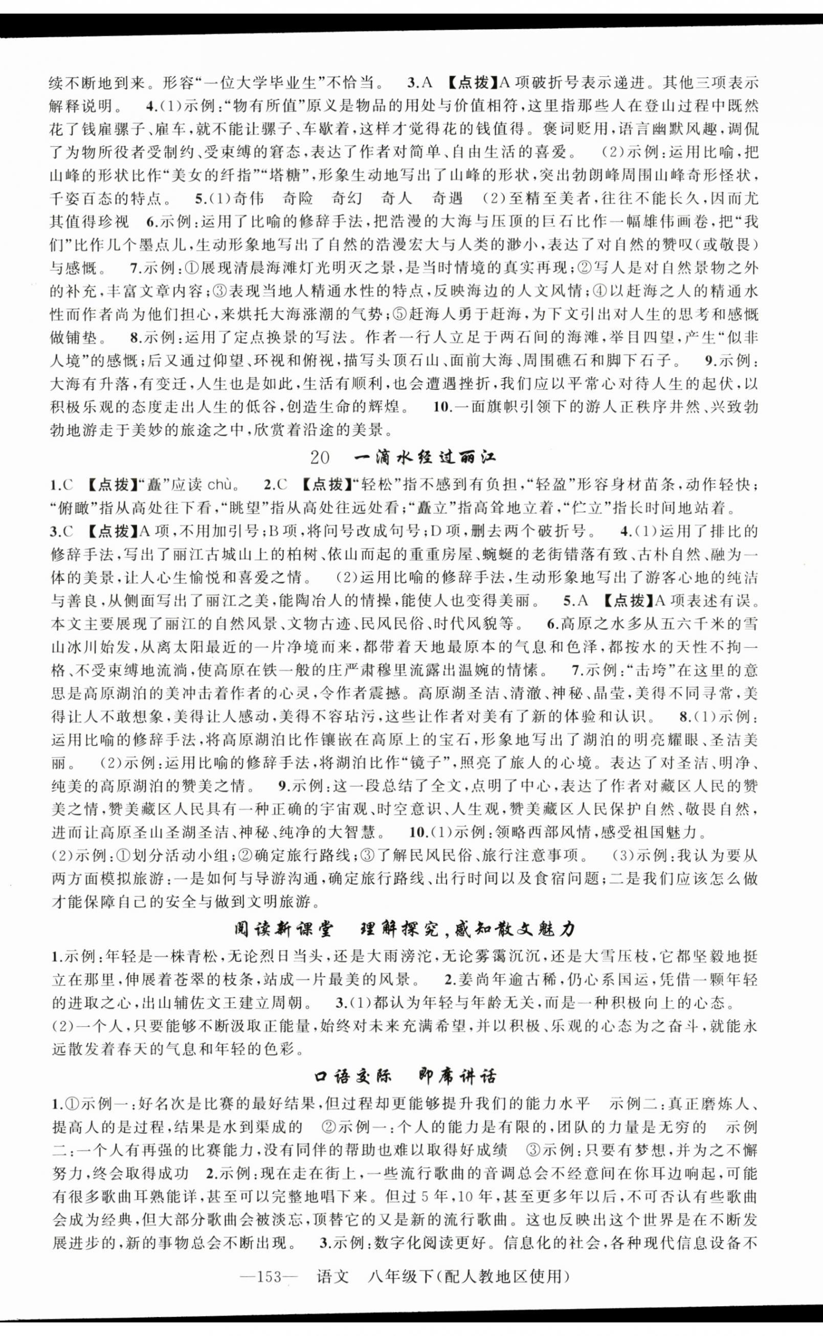 注:目前有些书本章节名称可能整理的还不是很完善,但都是按照顺序排列的,请同学们按照顺序仔细查找。练习册 2024年原创新课堂八年级语文下册人教版 答案主要是用来给同学们做完题方便对答案用的,请勿直接抄袭。