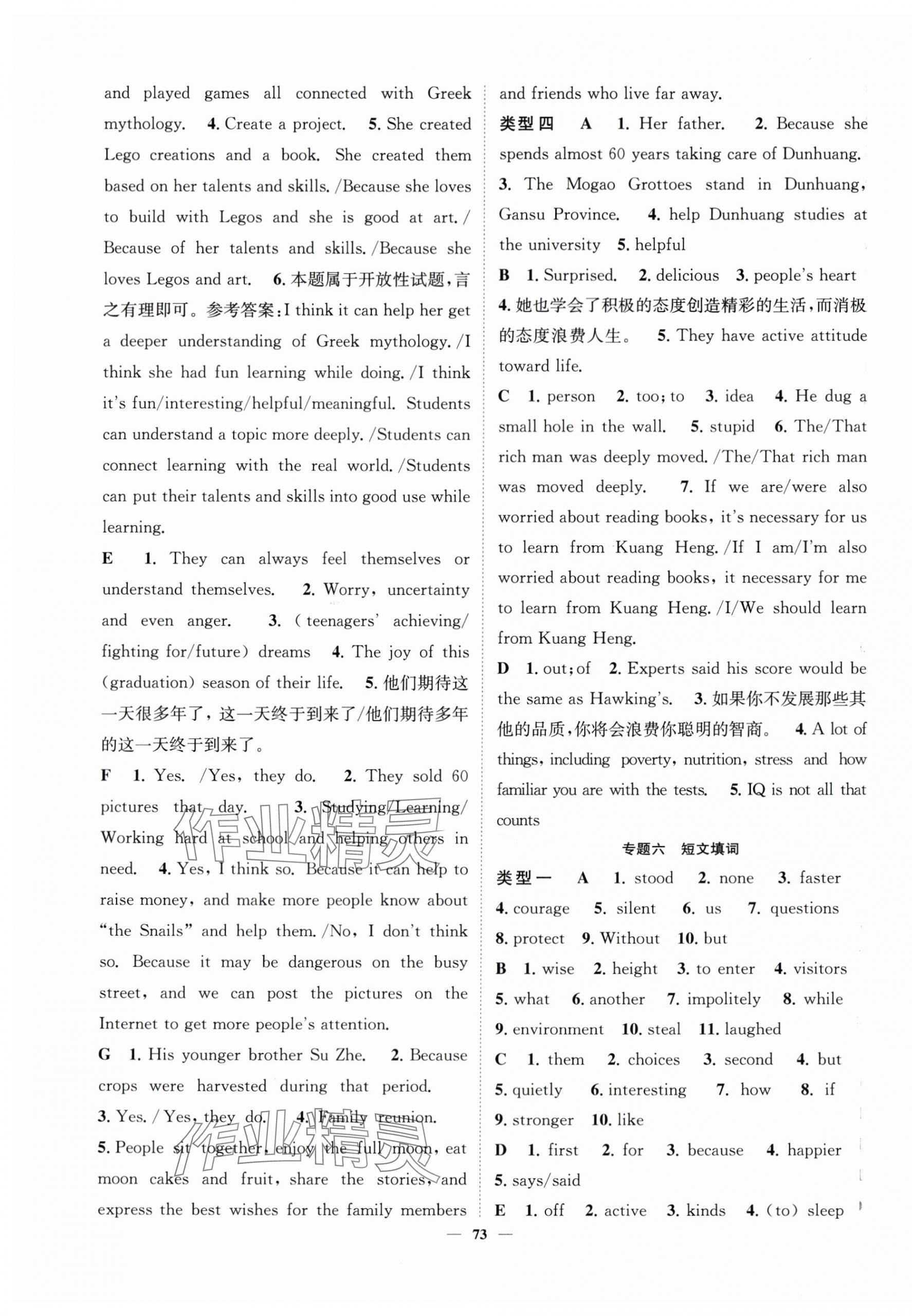 相关练习册答案