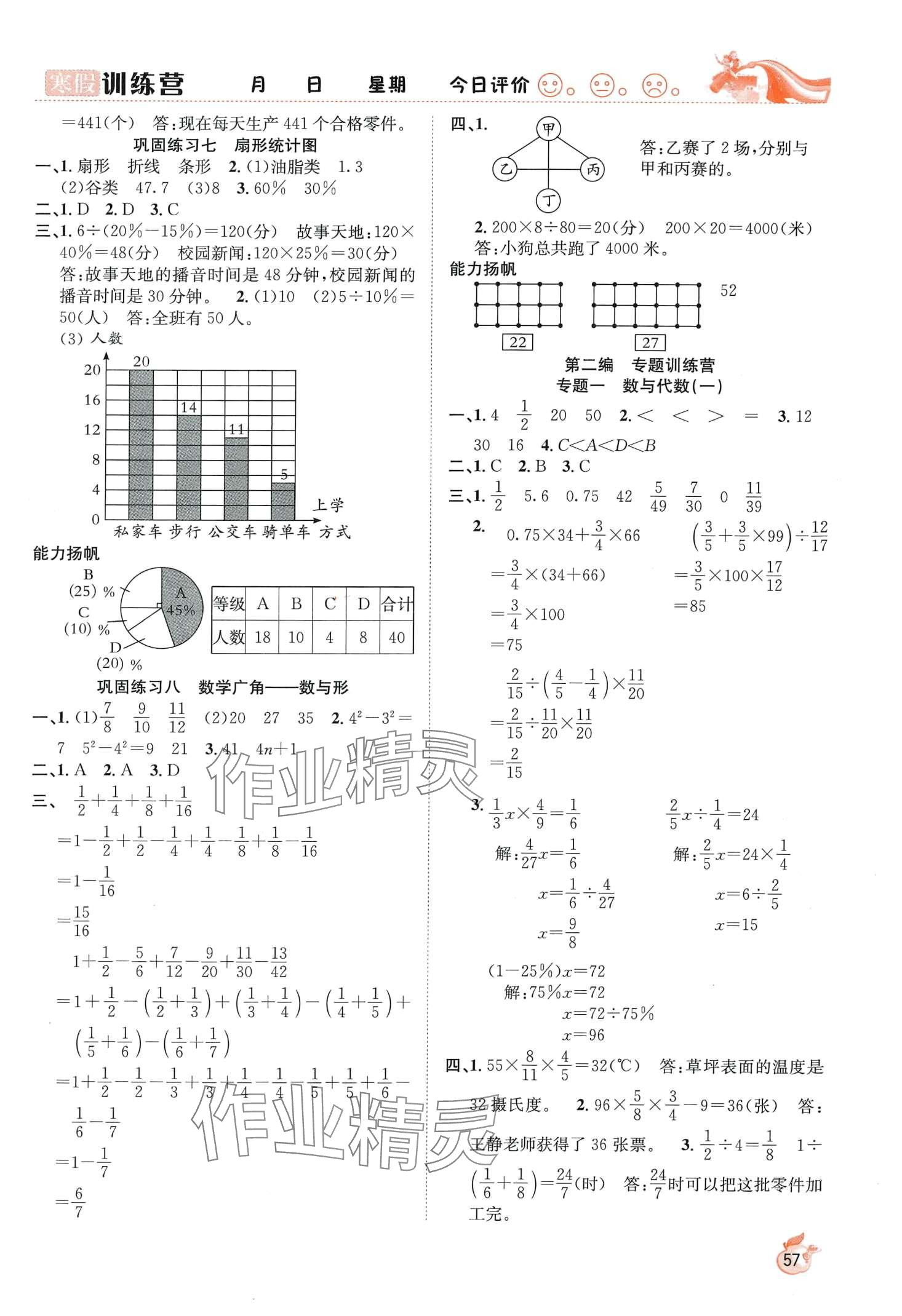 注:目前有些书本章节名称可能整理的还不是很完善,但都是按照顺序排列的,请同学们按照顺序仔细查找。练习册 2024年寒假训练营合肥工业大学出版社六年级数学人教版 答案主要是用来给同学们做完题方便对答案用的,请勿直接抄袭。