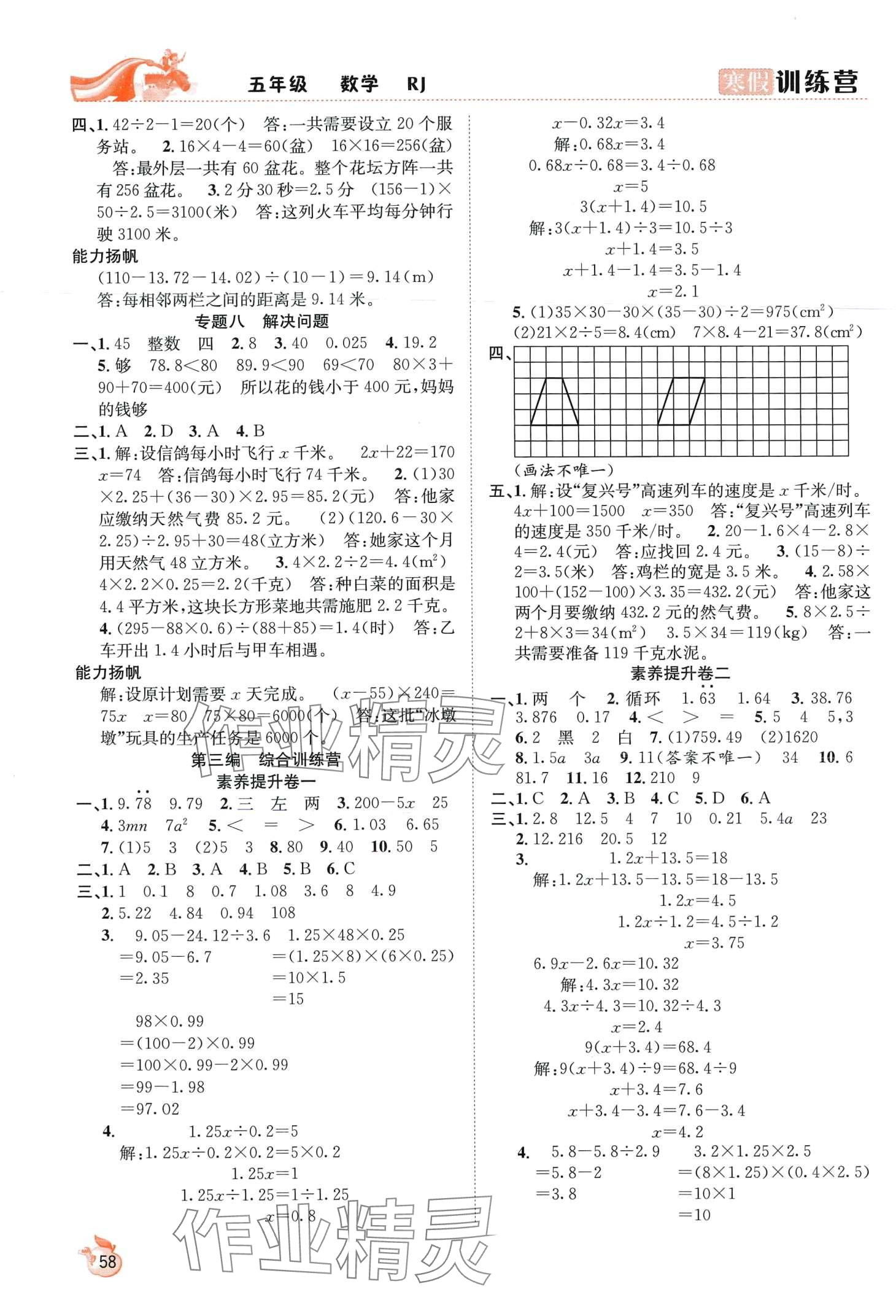 注:目前有些书本章节名称可能整理的还不是很完善,但都是按照顺序排列的,请同学们按照顺序仔细查找。练习册 2024年寒假训练营合肥工业大学出版社五年级数学人教版 答案主要是用来给同学们做完题方便对答案用的,请勿直接抄袭。