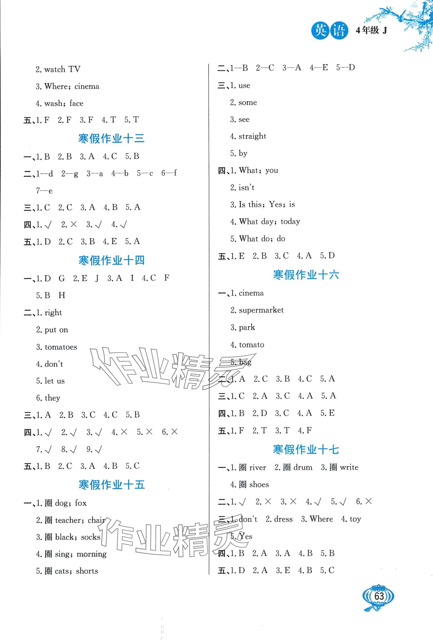 注:目前有些书本章节名称可能整理的还不是很完善,但都是按照顺序排列的,请同学们按照顺序仔细查找。练习册 2024年寒假生活河北美术出版社四年级英语冀教版 答案主要是用来给同学们做完题方便对答案用的,请勿直接抄袭。
