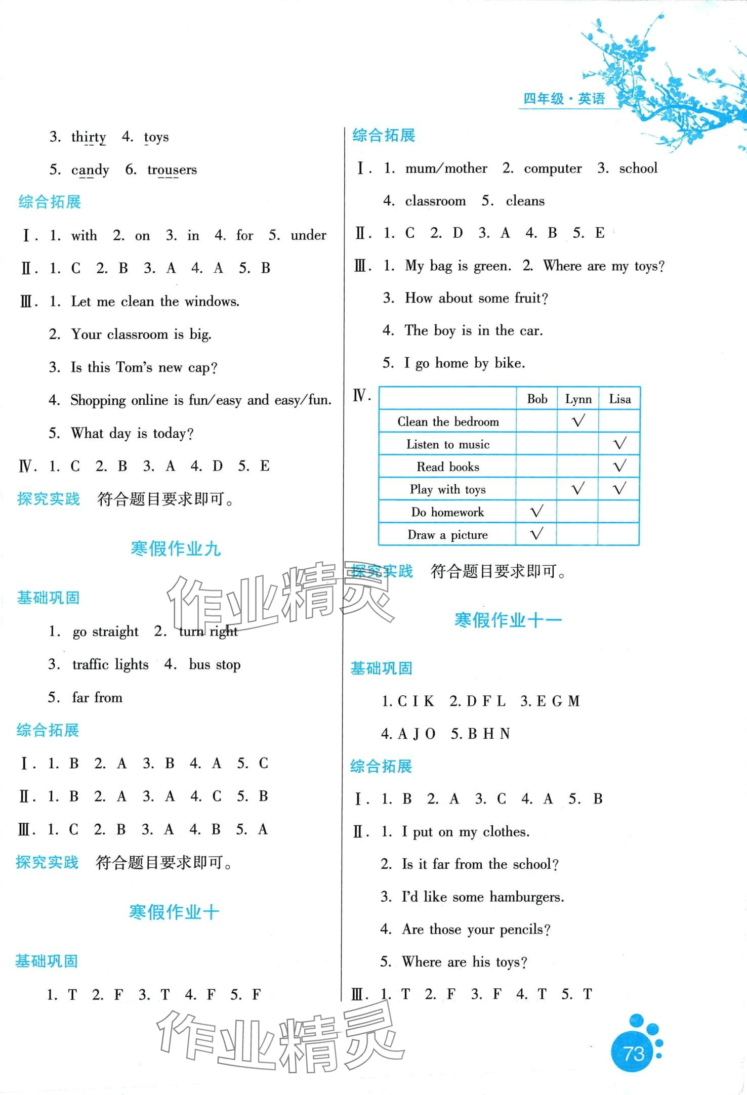 注:目前有些书本章节名称可能整理的还不是很完善,但都是按照顺序排列的,请同学们按照顺序仔细查找。练习册 2024年寒假生活河北少年儿童出版社四年级英语冀教版 答案主要是用来给同学们做完题方便对答案用的,请勿直接抄袭。