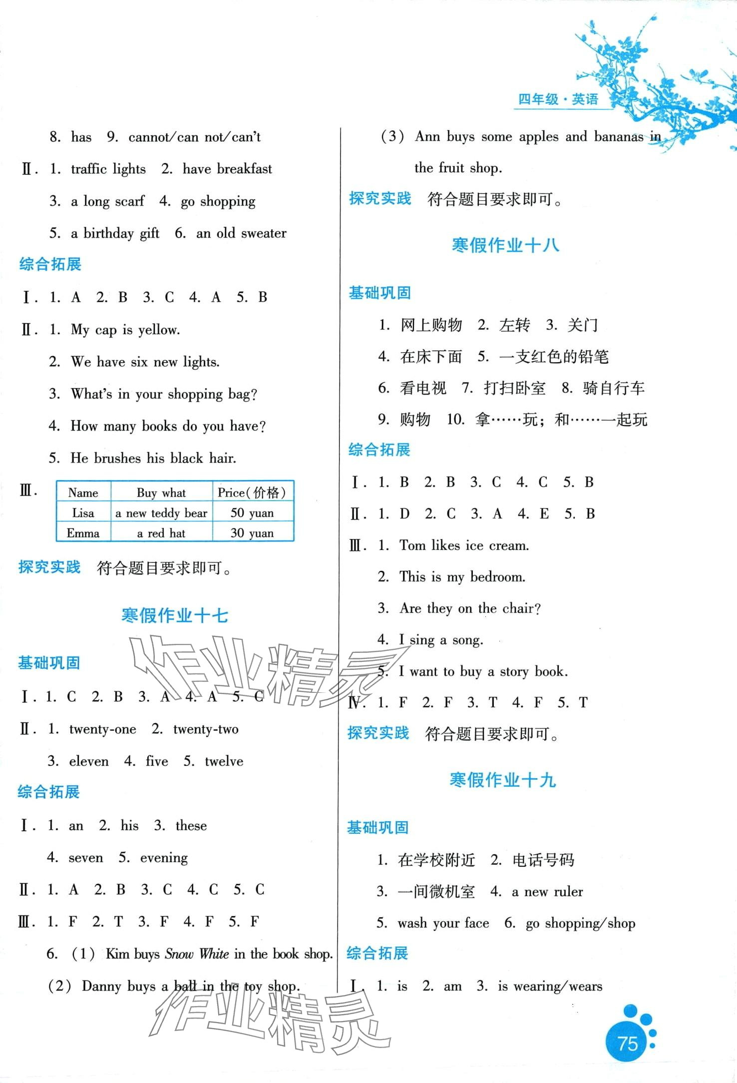 2024年寒假生活河北少年儿童出版社四年级英语冀教版