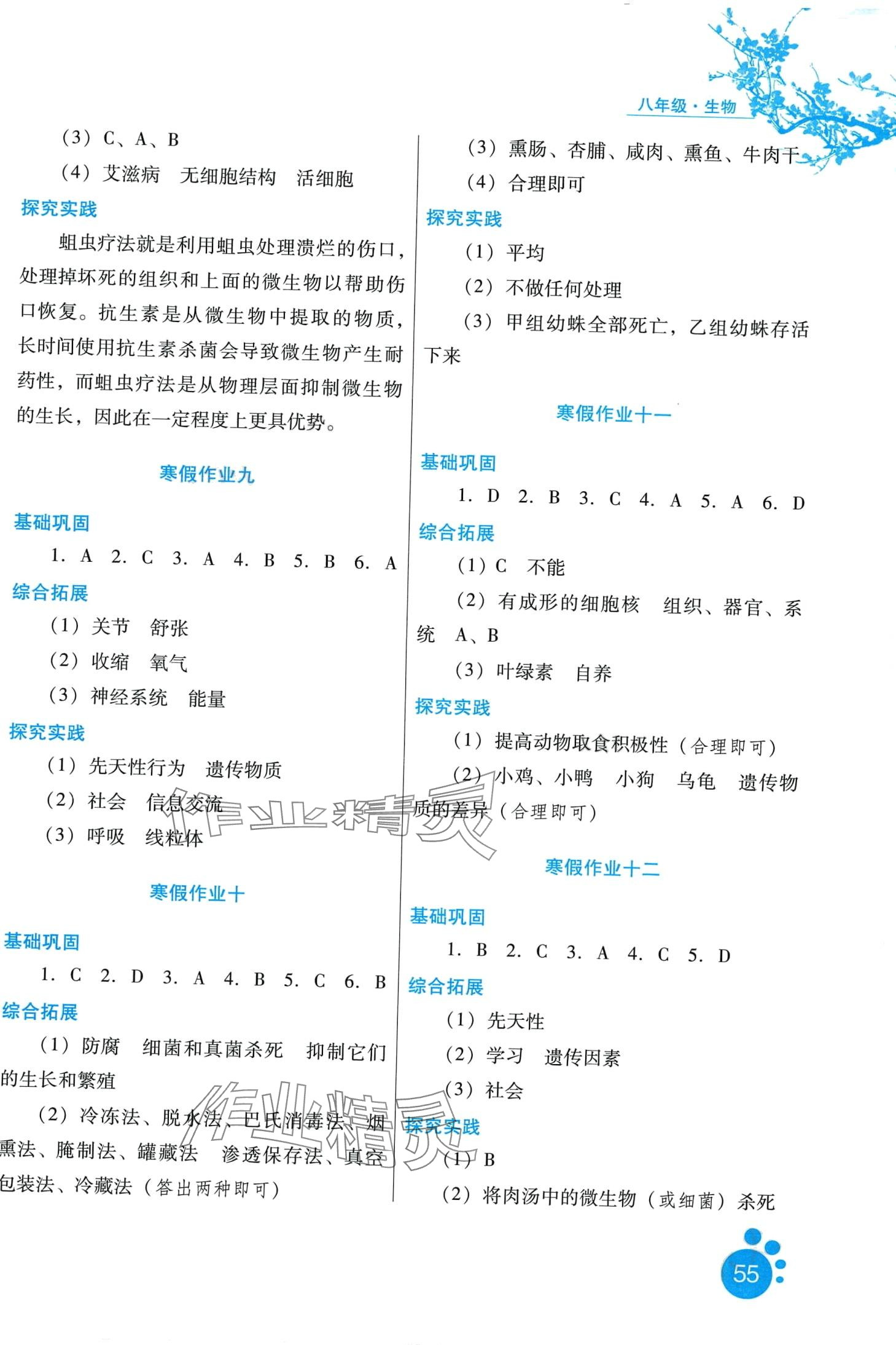 注:目前有些书本章节名称可能整理的还不是很完善,但都是按照顺序排列的,请同学们按照顺序仔细查找。练习册 2024年寒假生活河北少年儿童出版社八年级生物 答案主要是用来给同学们做完题方便对答案用的,请勿直接抄袭。