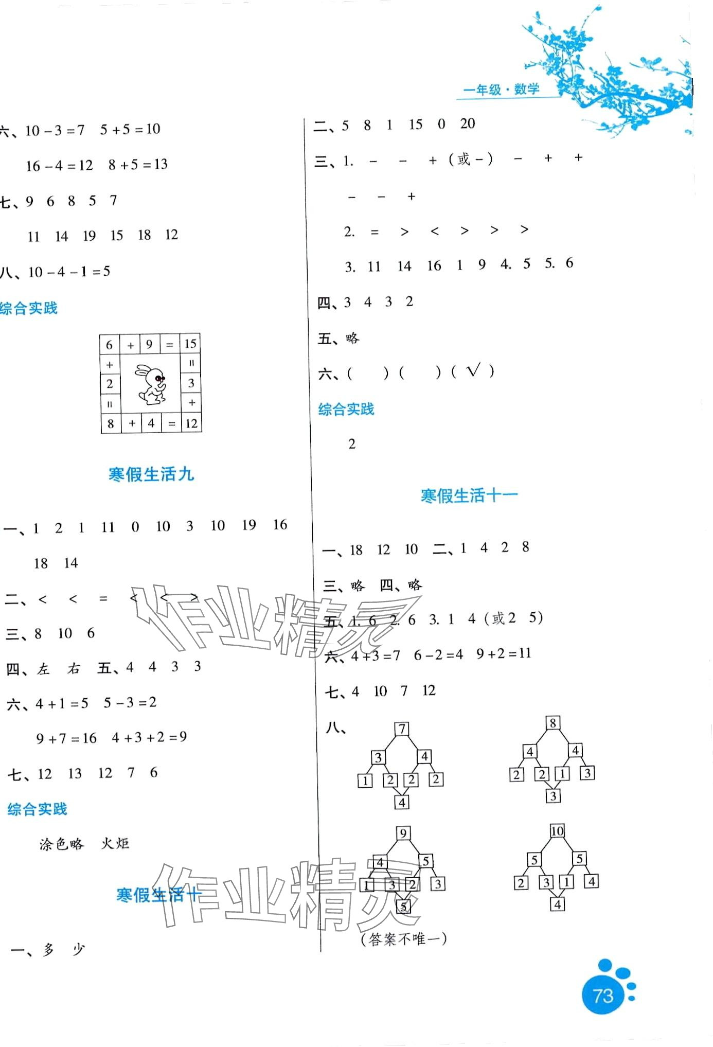 注:目前有些书本章节名称可能整理的还不是很完善,但都是按照顺序排列的,请同学们按照顺序仔细查找。练习册 2024年寒假生活河北少年儿童出版社一年级数学 答案主要是用来给同学们做完题方便对答案用的,请勿直接抄袭。